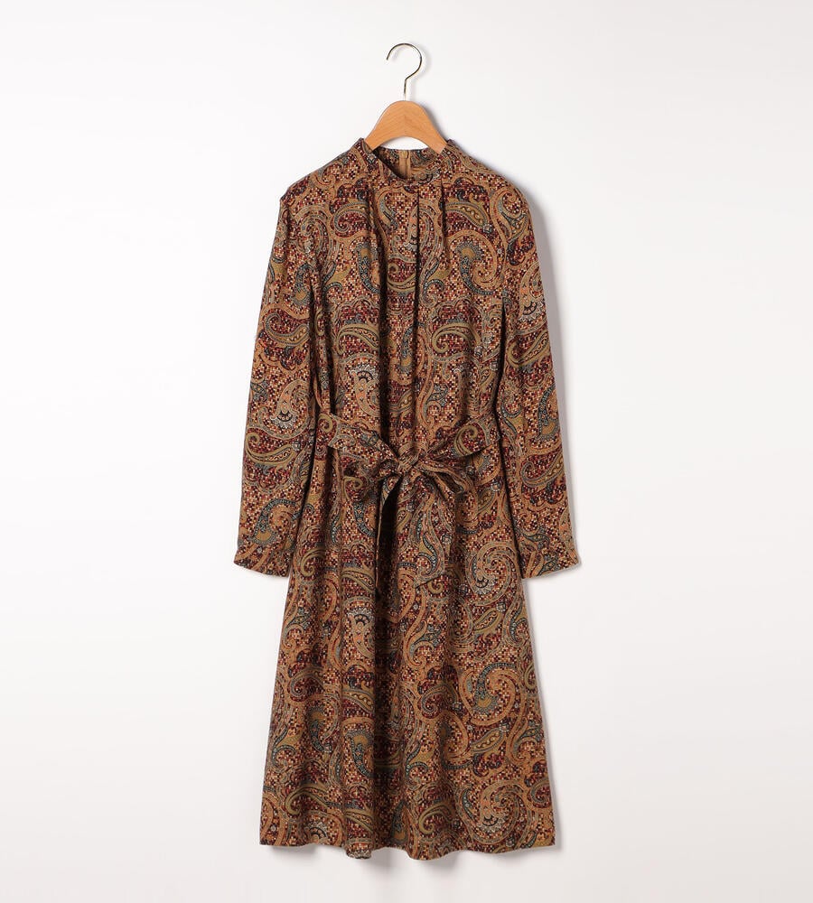 秋冬らしいシックなカラーのサラサアートプリントワンピース。エスニックなパターンとグラフィカルな模様を組み合わせたモダンなデザインが1枚で存在感のある装いに。スタンドカラー、首もとにあしらったタックデザインがポイント。バックファスナーで着脱しやすく、ウエストベルトはお好みでオンオフのアレンジが可能です。