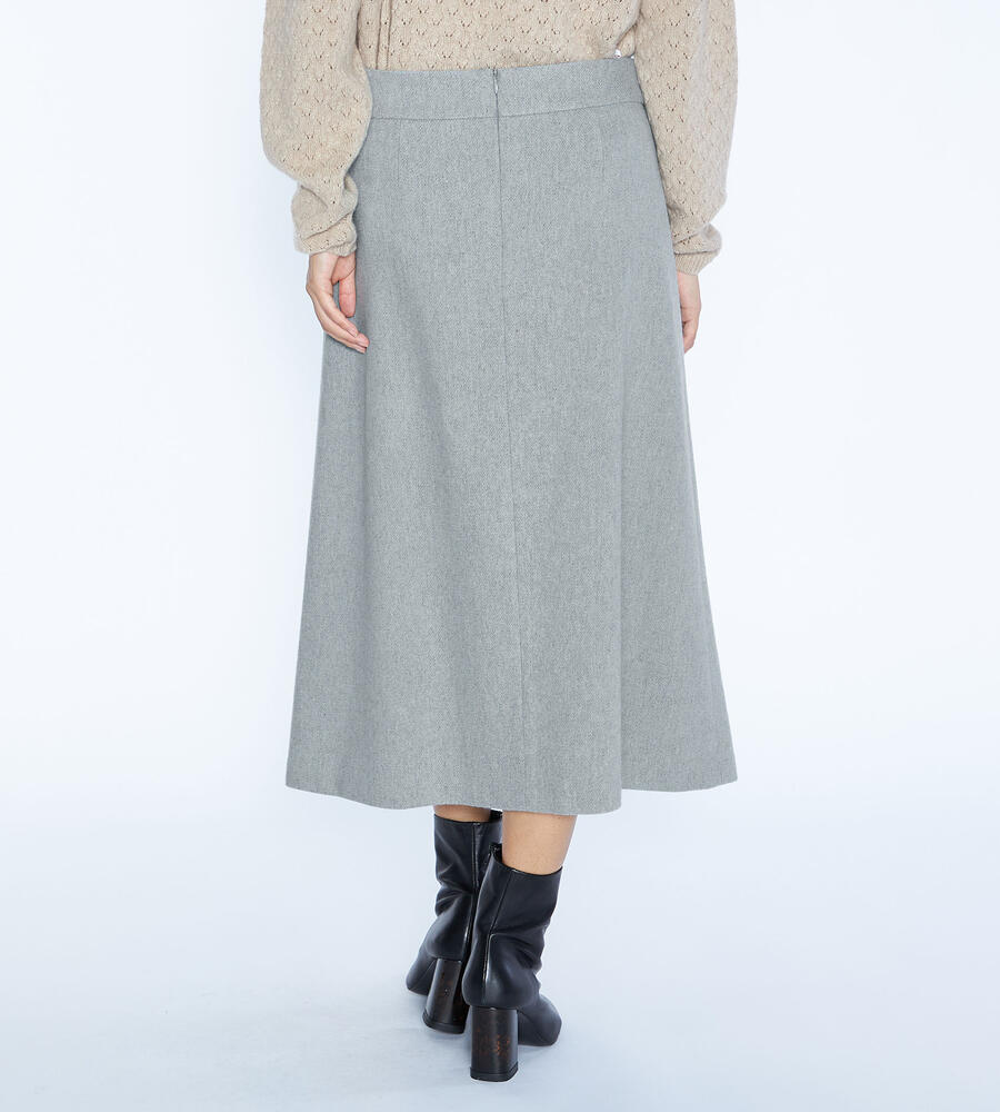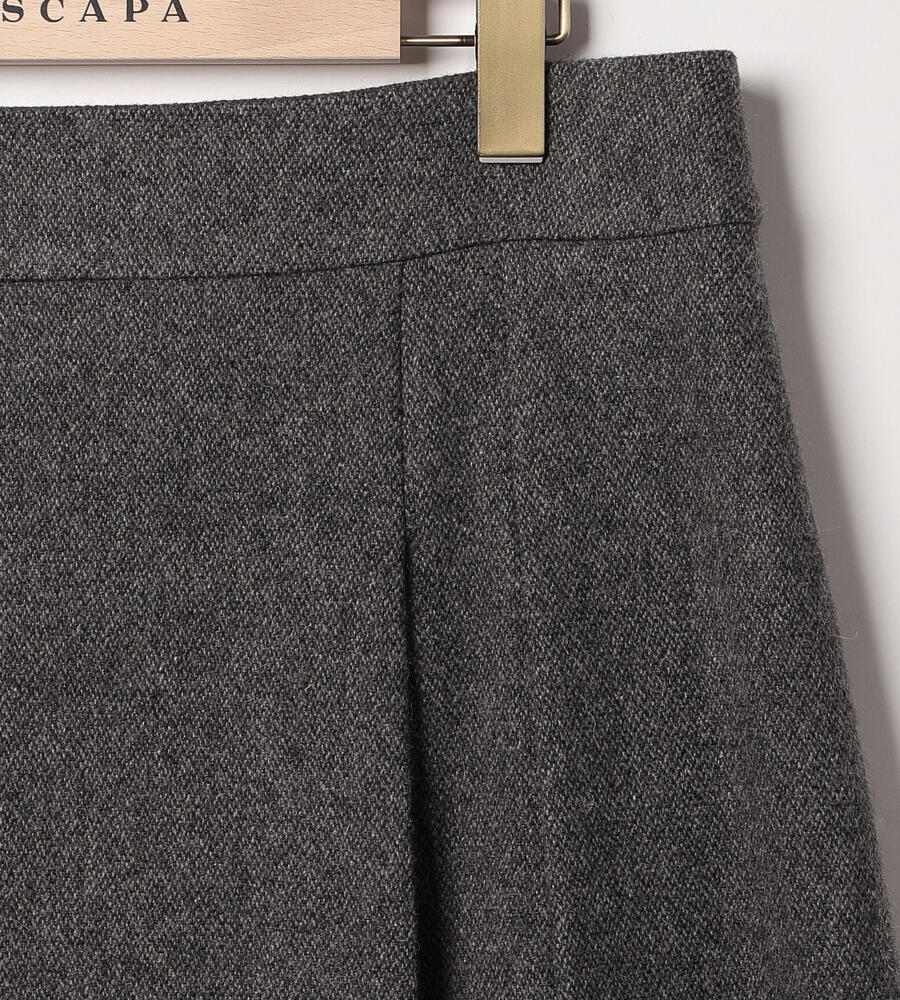 秋冬コーディネートのワードローブとして使い勝手の良いシンプルな無地のブリリアントツイードスカート。あたたかな素材感で快適な着心地。フロントにプリーツをあしらい、裾に向かって広がるシルエットに仕上げています。ブーツとも合わせやすい丈感もポイントです。