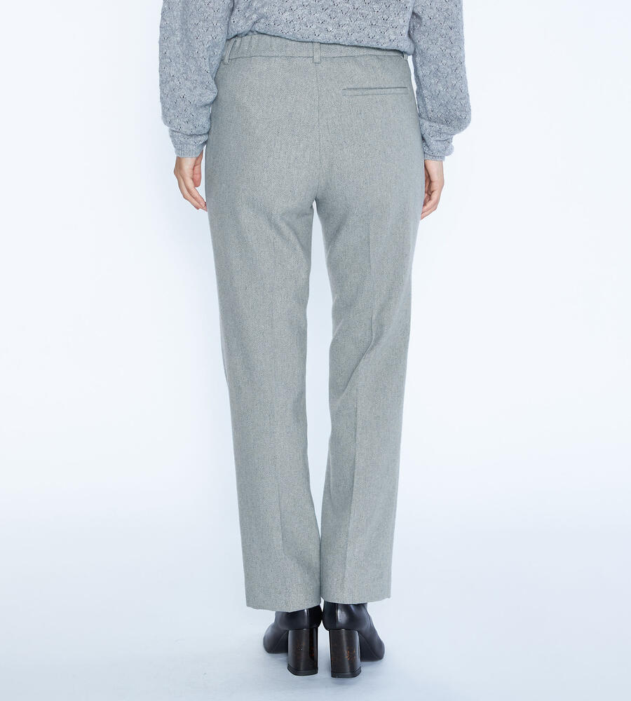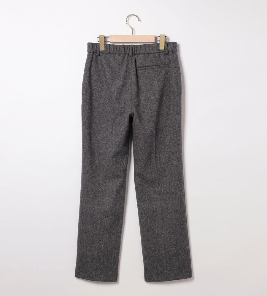 クラシックなムード漂うブリリアントツイードパンツ。すっきりとした脚のラインを演出するストレートシルエット。サイドとバックにポケットを配置。ウエストがゴム仕様になったコンフォートな着心地も嬉しい。シンプルなデザインは秋冬スタイルのベーシックとして活躍します。