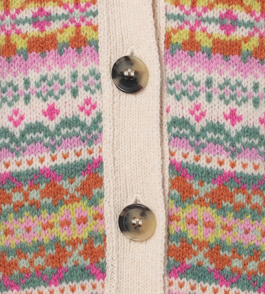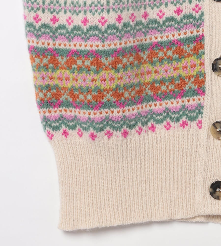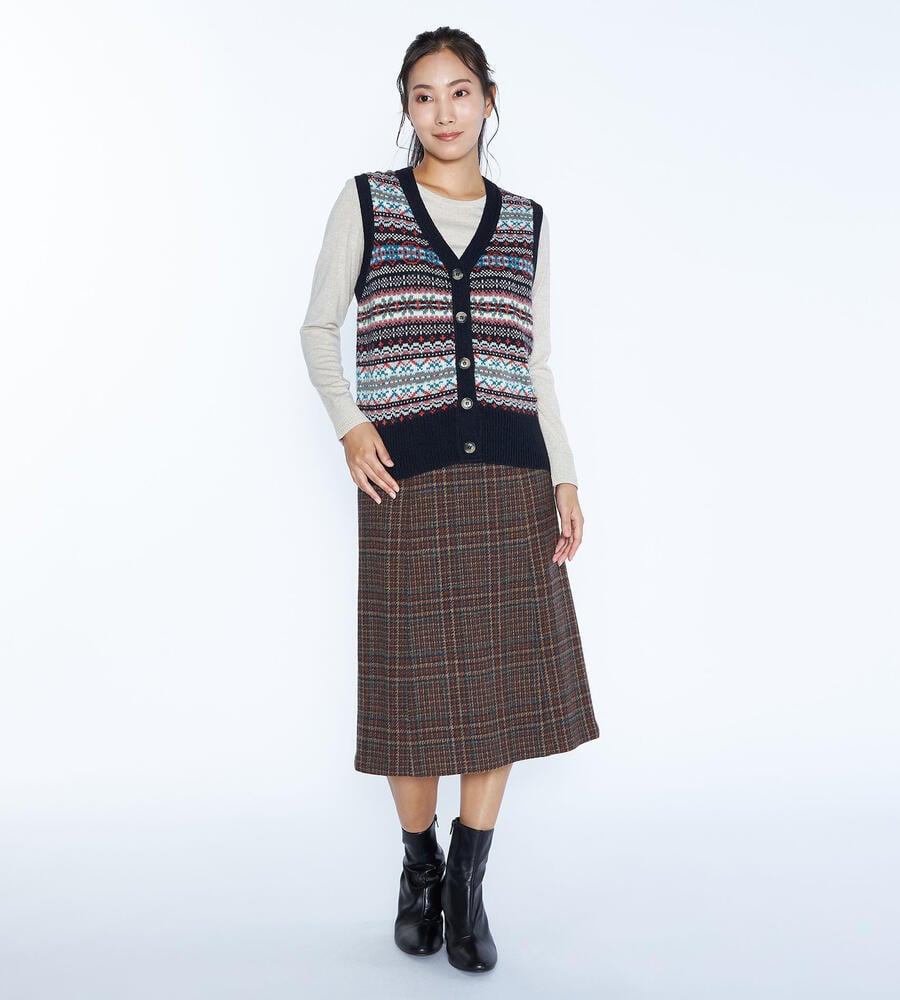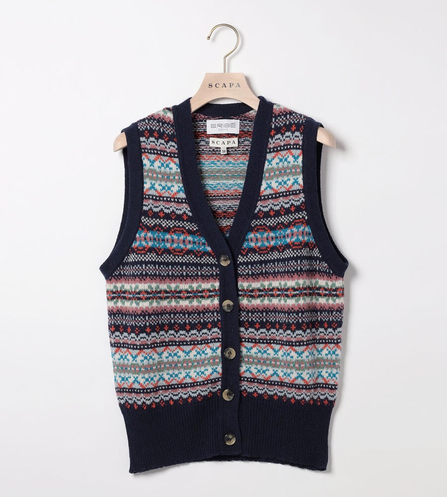 ほっこりとする柄使いの上質ニットベスト。ヨーロッパの冬の息吹を詰め込んだ、賑やかなカラーリングで、装いに品位と季節感をもたらします。タートルネックのトップスや襟付きのブラウス、ボウブラウスなどとも好相性。ウール100%のニットは暖かさも抜群です。