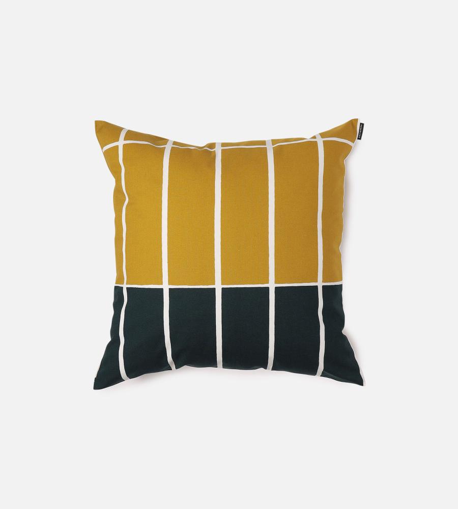リビングで使うのにちょうど良い、50×50cmサイズのクッションカバー。マリメッコ創設者のArmi Ratiaがデザインした「Tiiliskivi」柄は、すっきりとしたカラーコントラストが新鮮です。インテリアに馴染みやすく、ほどよいアクセントの役目も担う、Marimekkoらしいアプローチのアイテムとなっています。一年中使えるコットン素材です。