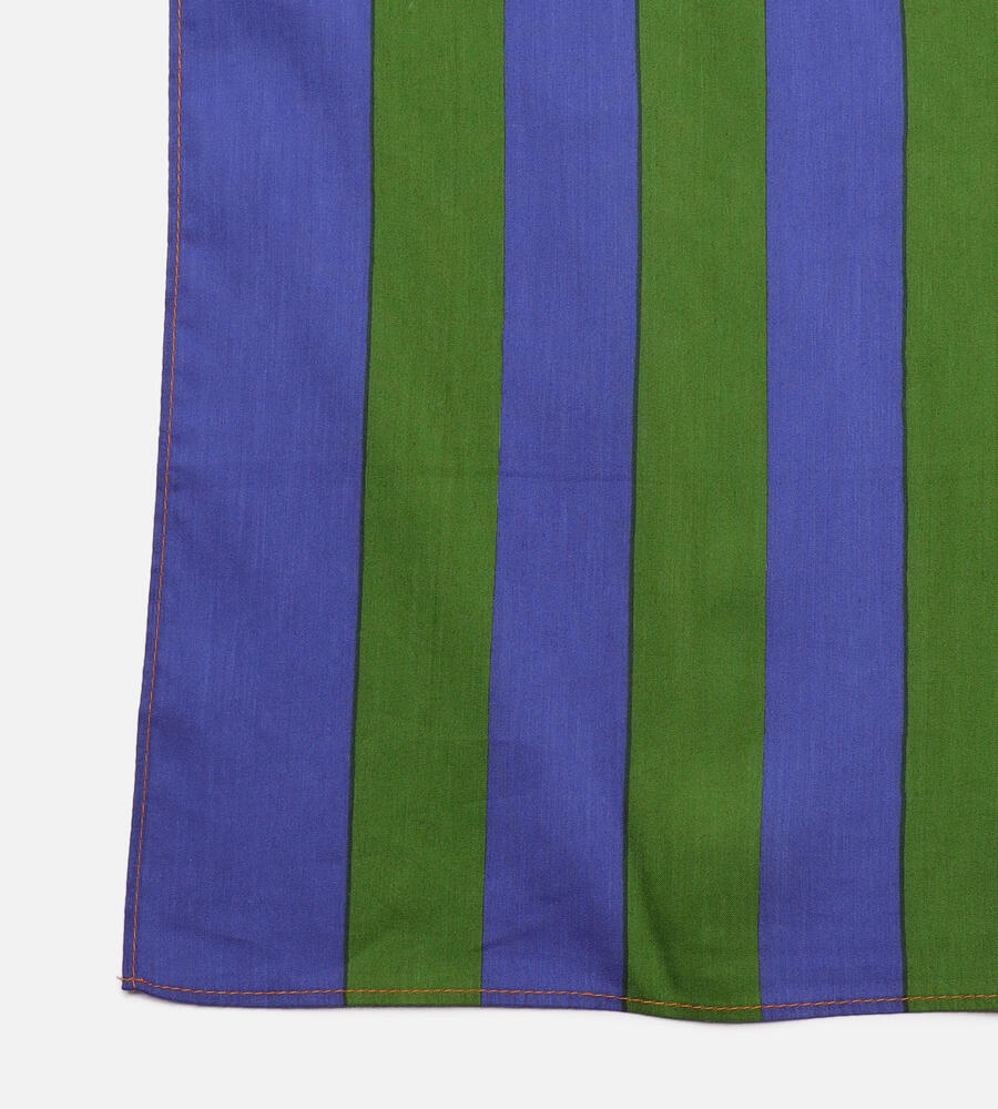2色の異なるストライプ柄を合わせたスタイリッシュなデザインのスカーフ。コットンとシルク混合のなめらかな肌触りの生地感も魅力。首に巻いたり、ヘアアレンジメントやバッグにプラスしたりと使い勝手万能。折り方や結び方によって異なる印象を楽しめて、コーディネートの華やかなアクセントになるアイテムです。
