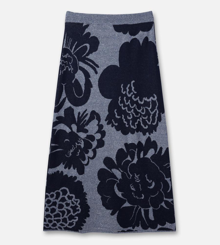 シックなカラーでまとめたPioni柄のニットスカート。伸縮性のあるウエストバンドがストレスフリーな履き心地。ロング丈のストレートシルエットで仕上げており、同柄のトップスと合わせたセットアップコーデも楽しんでいただけるアイテムです。