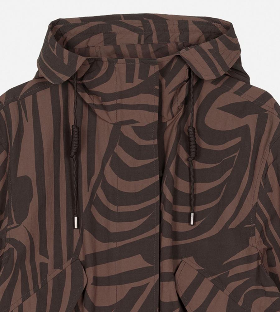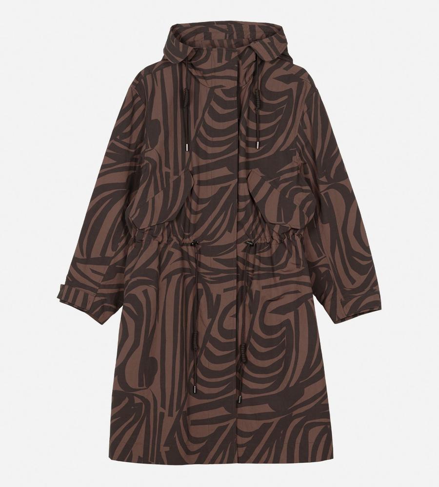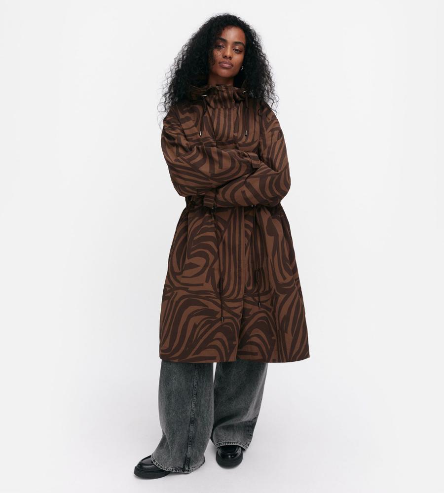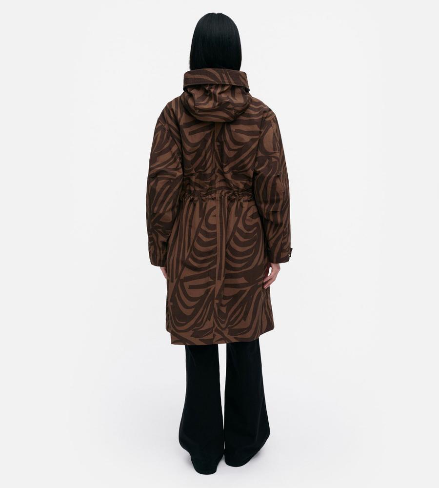 デザイナー Antti Kaleviが手掛けた、「いくつかのストライプ」を意味する「Jokuraita(ヨクライタ)」柄のフーデッドコートです。シックな配色ながら存在感を主張。軽量で取り扱いやすいナイロン素材を使用しています。ウエストのドローコードの絞り具合によって、シルエットに変化を付けられます。