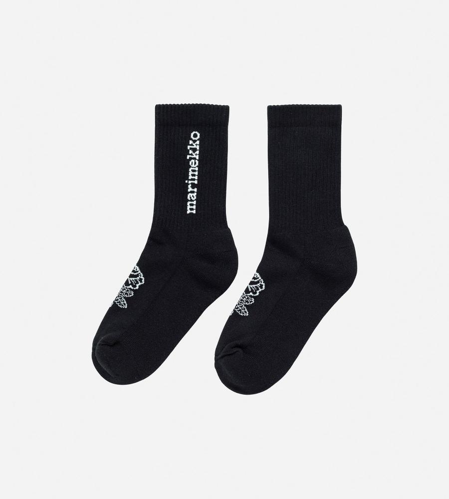 Marimekkoのロゴがサイドに施された、クルー丈のリブソックスです。ローファーにスニーカーなど、幅広いシューズに合わせられる万能な一足。リブが心地よくフィットし、不快なズレ落ちを防ぎます。足の甲の部分にはウェディングローズを意味する「Puikea Vihkiruusu」柄のバラがデザインされていて、結婚祝いの品に添えるのも、ウィットに富んだセンスがアピールできておすすめです。