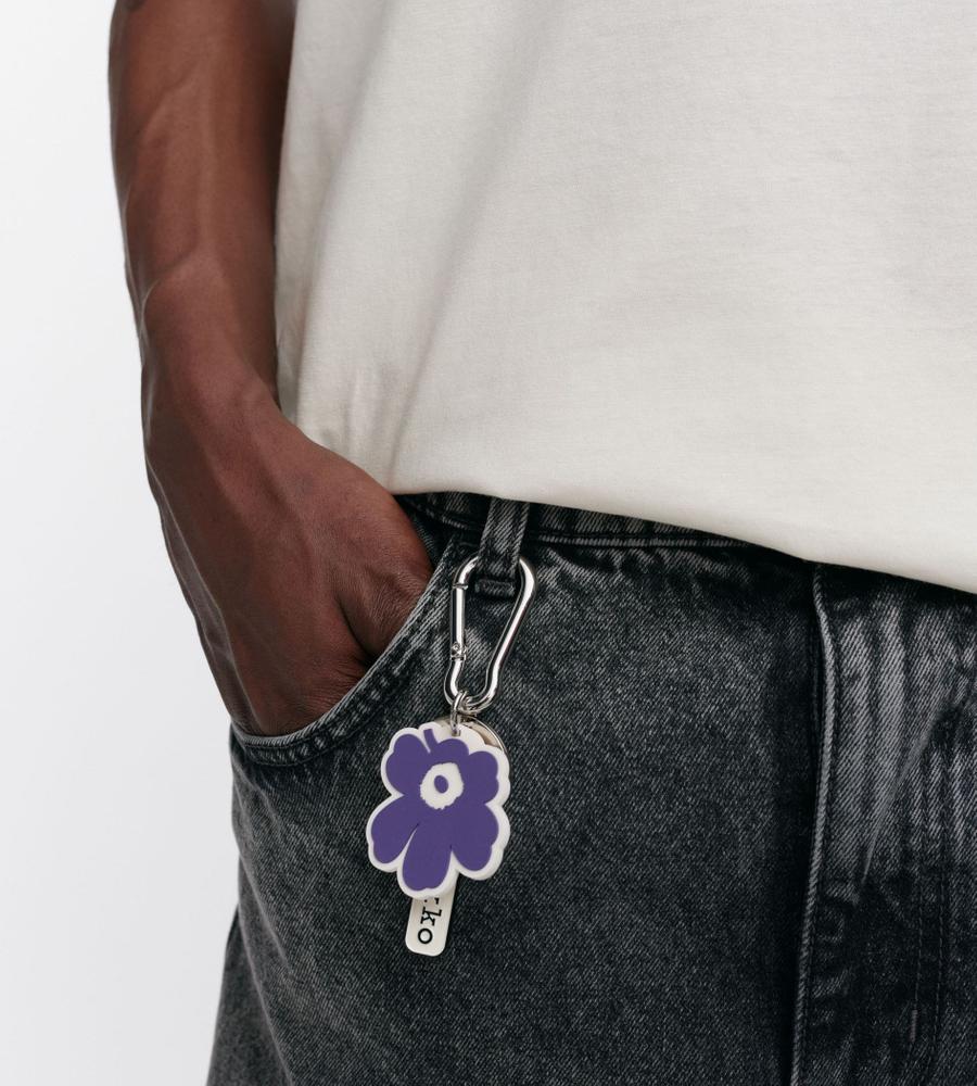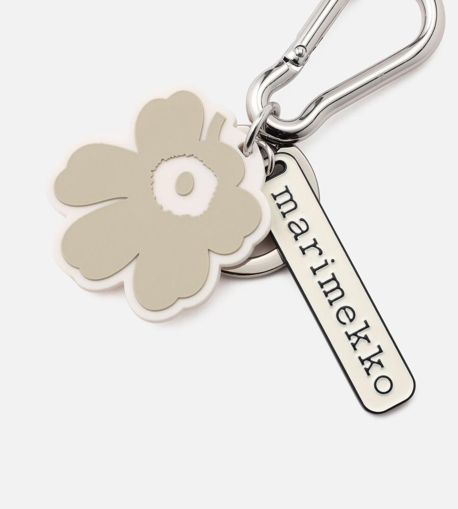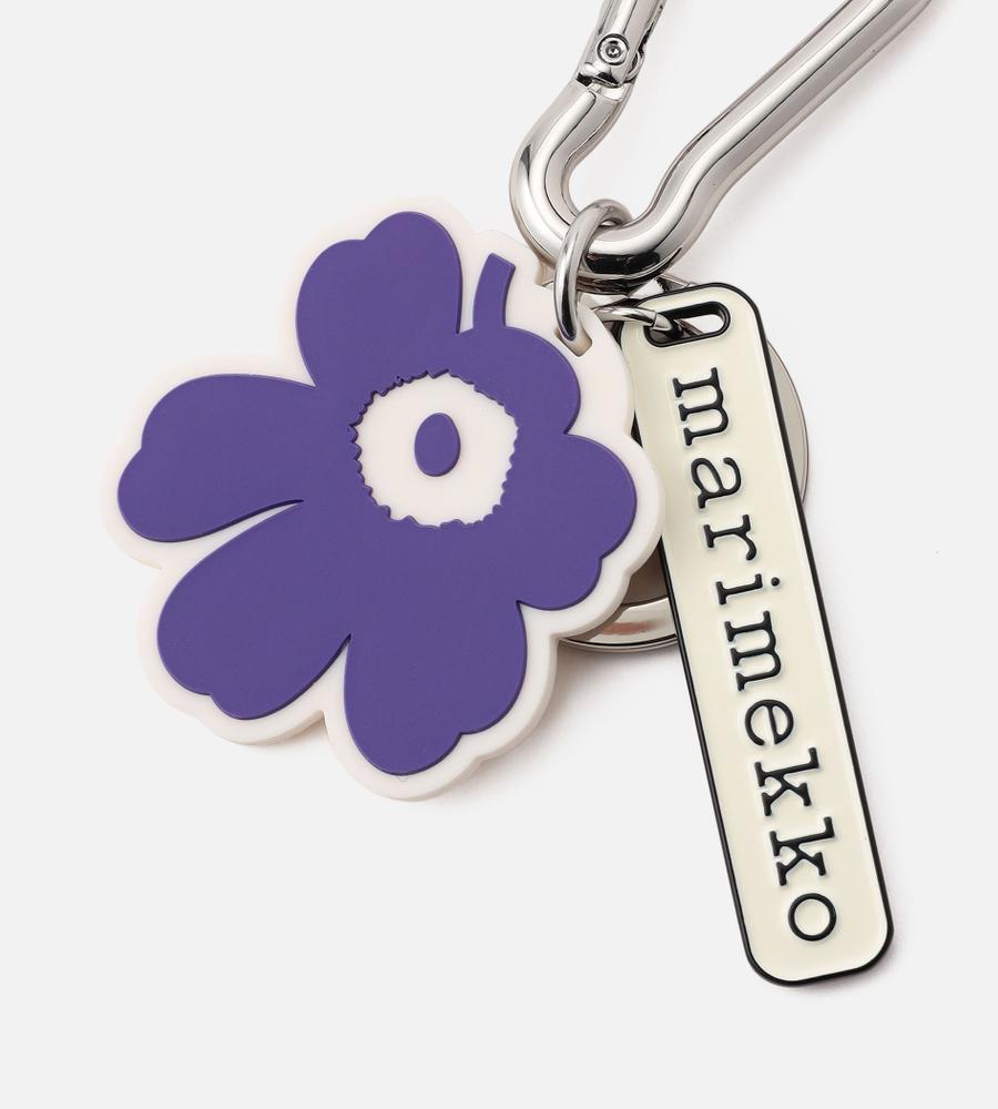 ブランドロゴ入りのプレートとUnikkoモチーフを飾ったキーチェーン。鍵などのセットに便利なリングパーツもあしらっています。バッグの持ち手やボトムスのベルトループなどにも着脱がスムーズなカラビナ仕様。シンプルなカジュアルコーディネートのワンポイントとして取り入れるのもおすすめです。