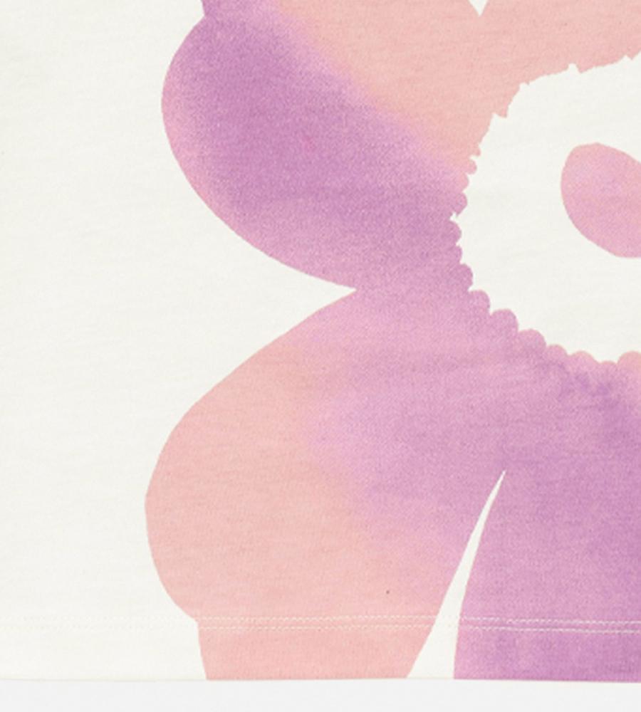 フロントに一輪のUnikko柄を配した、シンプルでいてキャッチーなTシャツ。後ろ首元のロゴも、さりげない可愛さをプラス。さらりとコーディネートでき、毎日の着こなしに活躍する一枚です。