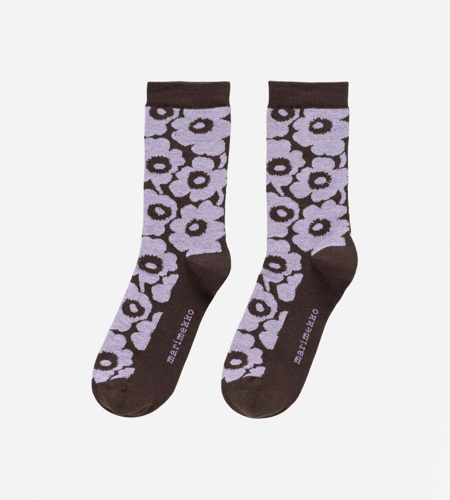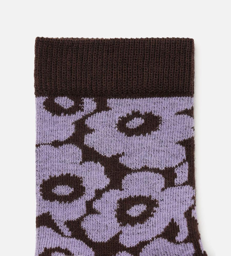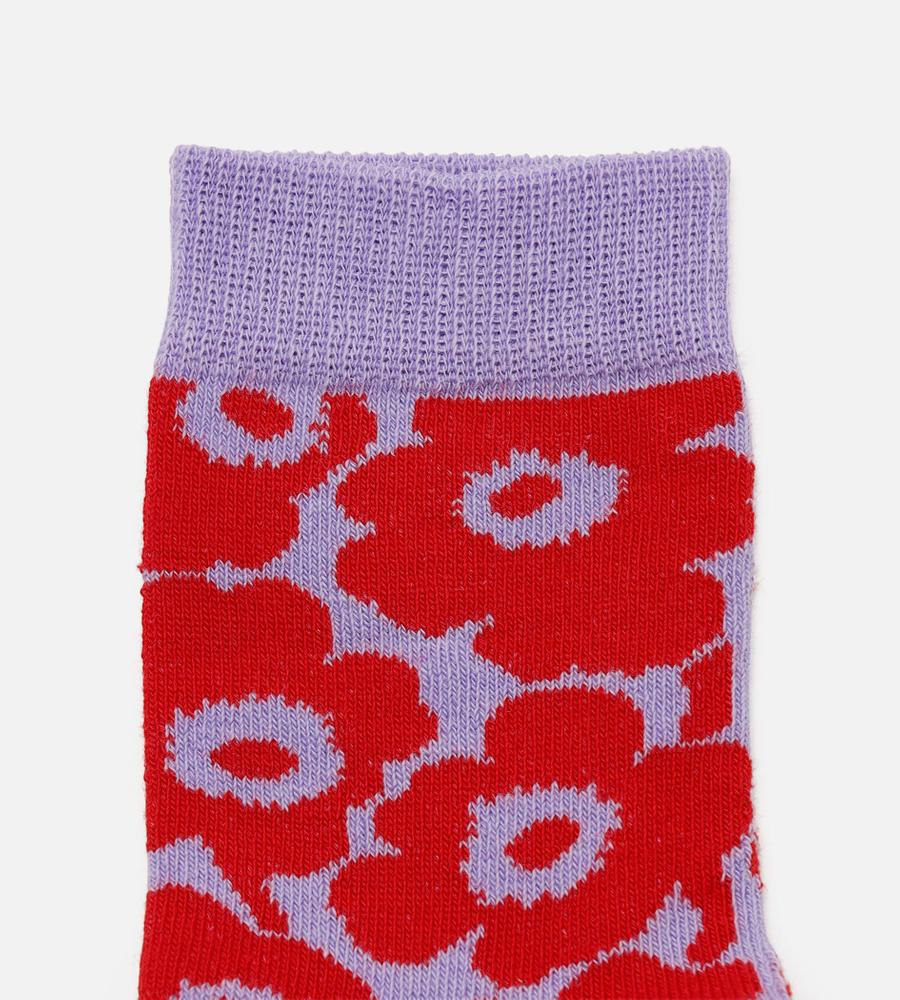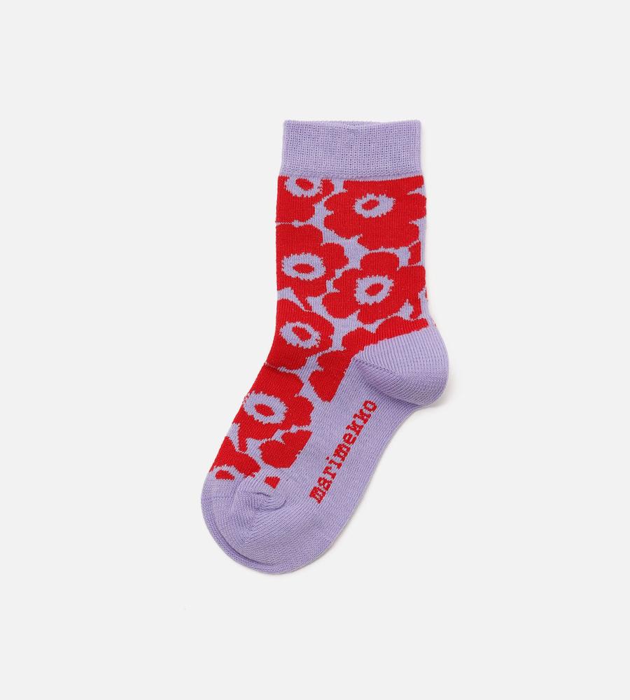 無地とUnikko柄を切り替えた、愛らしくてスタイリッシュなソックス。足元からのおしゃれを楽しみたい日に最適です。ほど良いレングスのクルー丈で、オールシーズン活躍します。