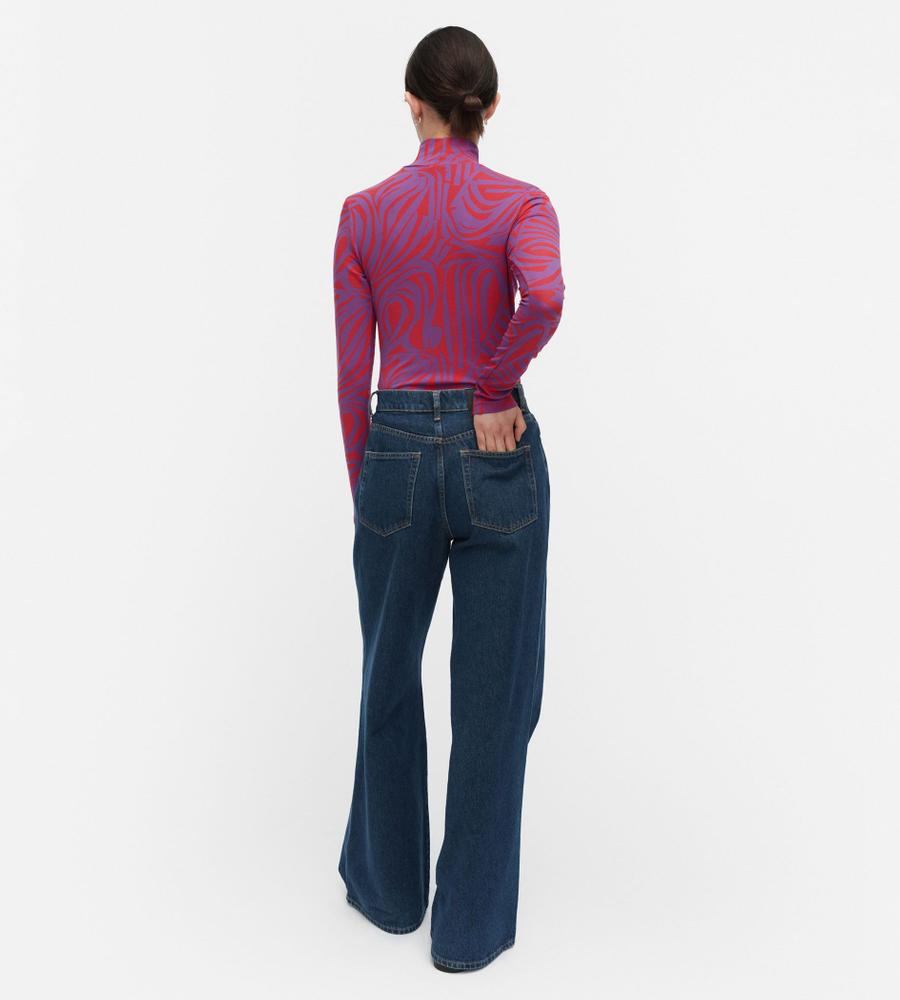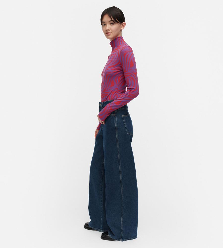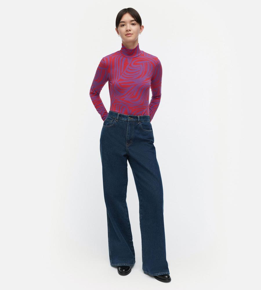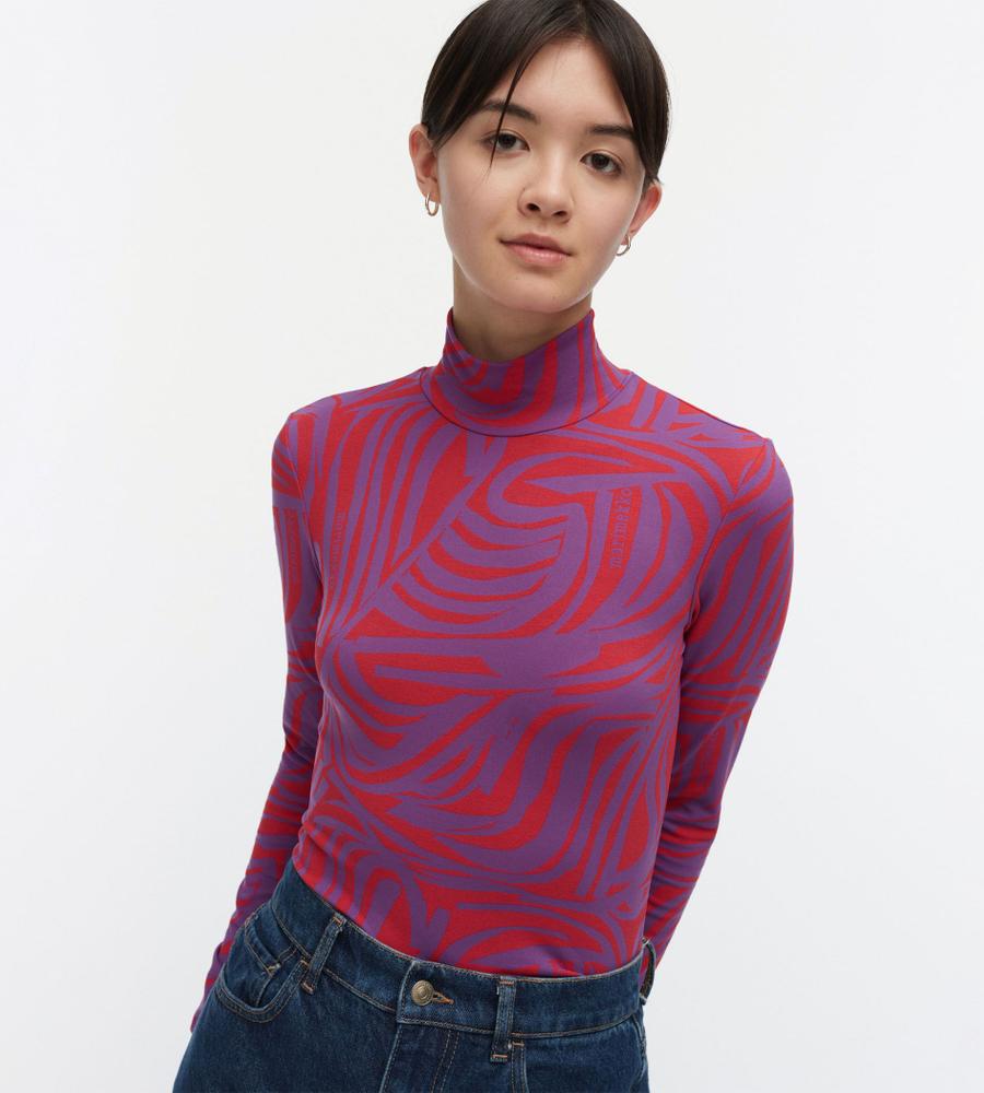 心地良いフィット感とストレッチ性で、快適さを実感できるハイネックの長袖シャツ。存在感のある「Jokuraita」柄は、いくつものストライプ柄を組み合わせたデザインです。意外性のある配色で、シンプルな一枚着にも最適。タイトフィットのため、ジャケットのインナーにはもちろん、ジレやジャンパースカートとのレイヤードなども楽しめます。