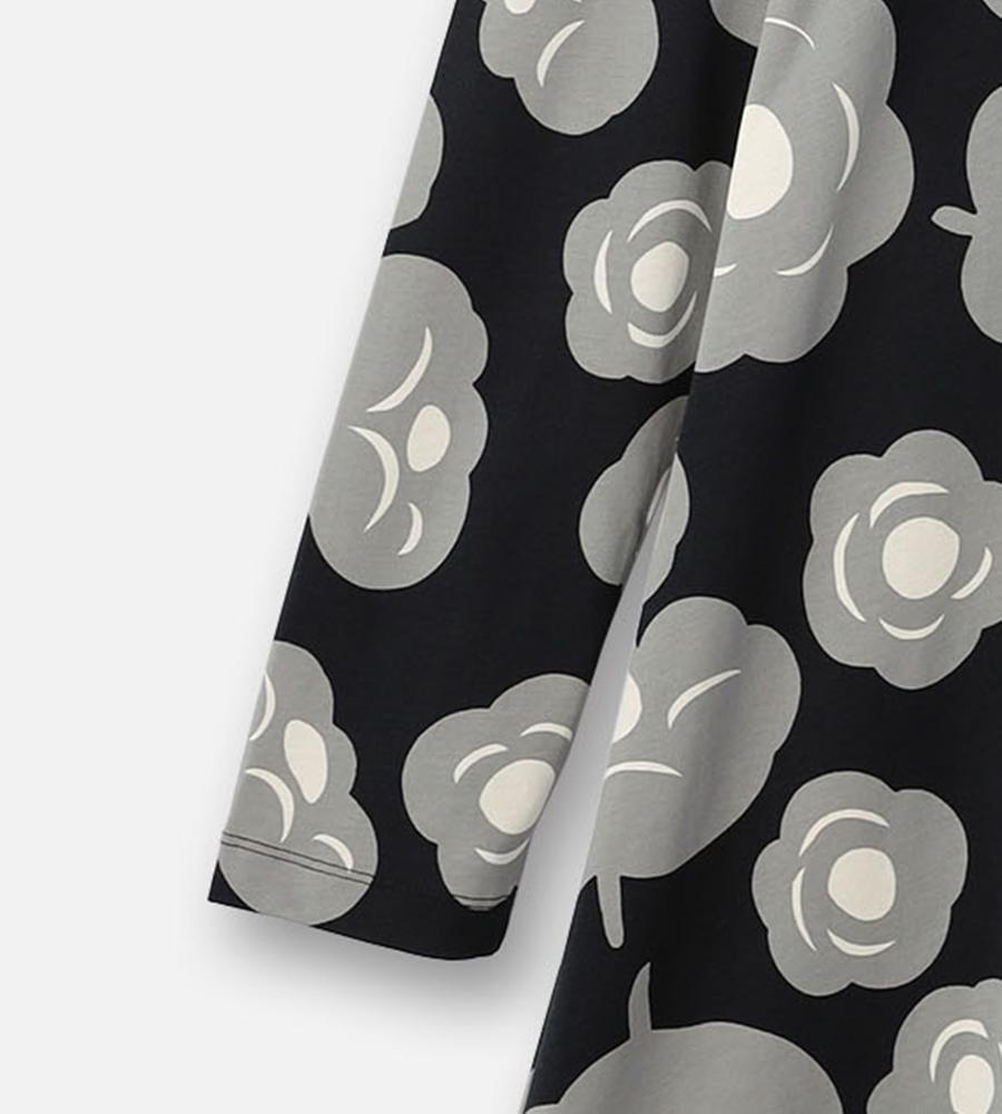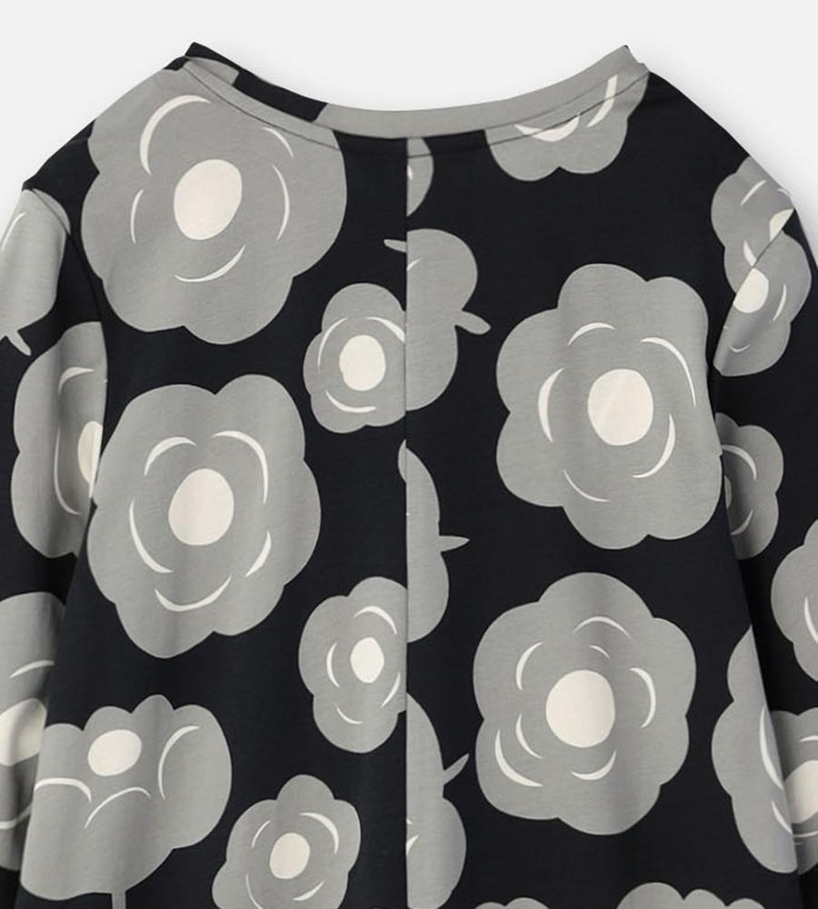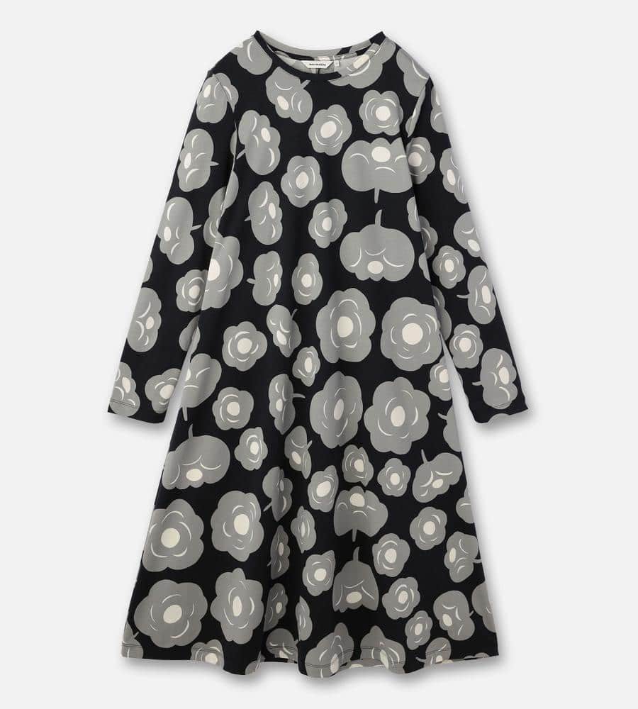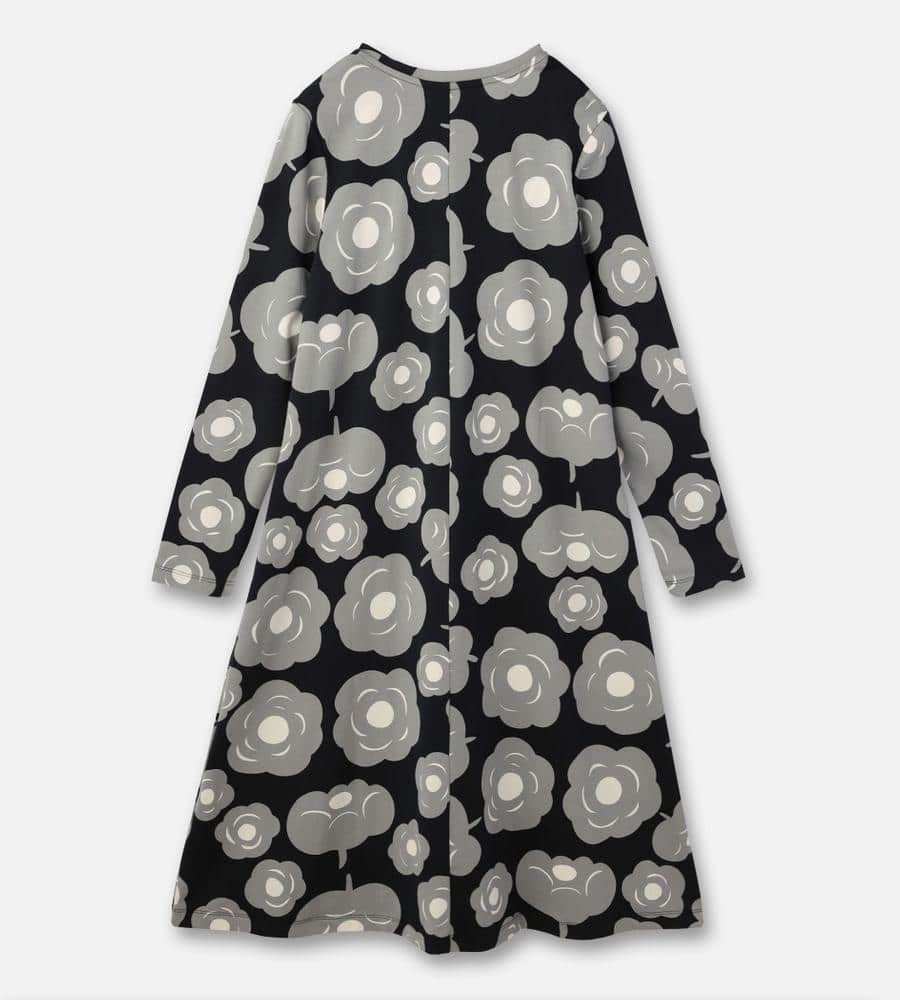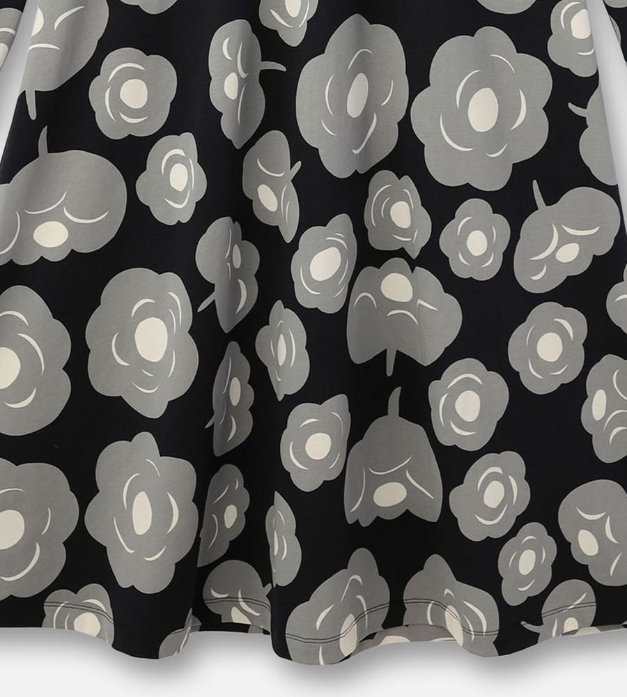 モード感の漂うお花柄のワンピース。歩くたびに揺れる裾が、フェミニンな気分を盛り上げてくれそう。リラックスした気分で過ごしたい日にもおすすめの一枚です。