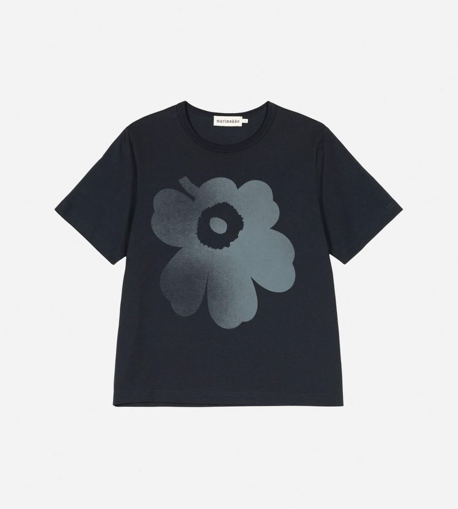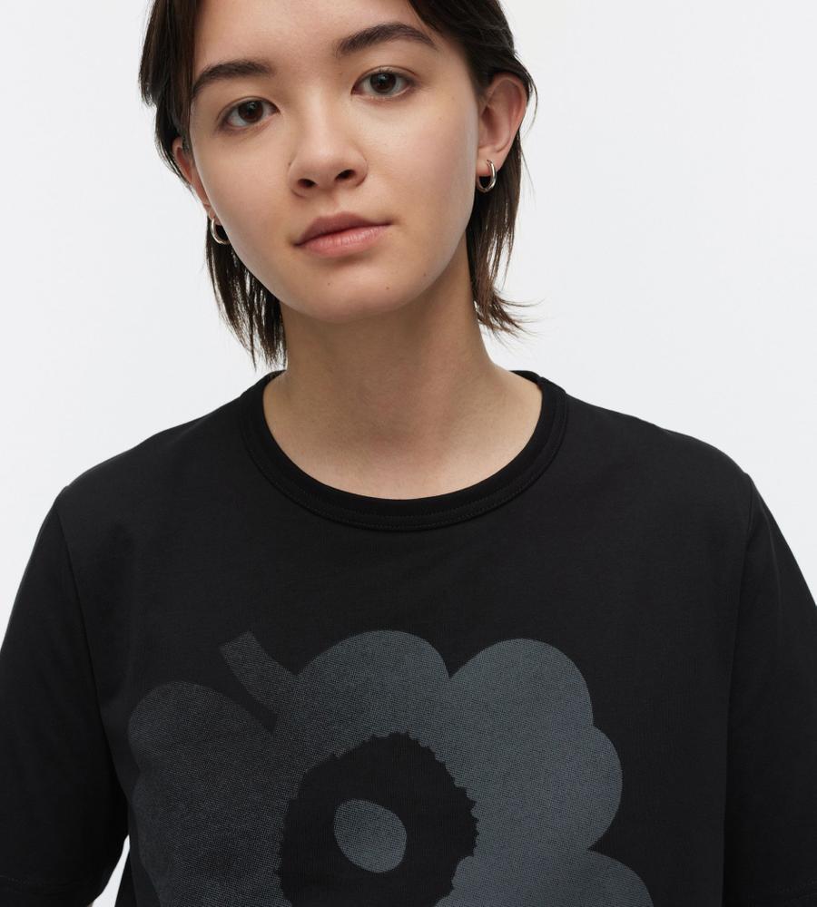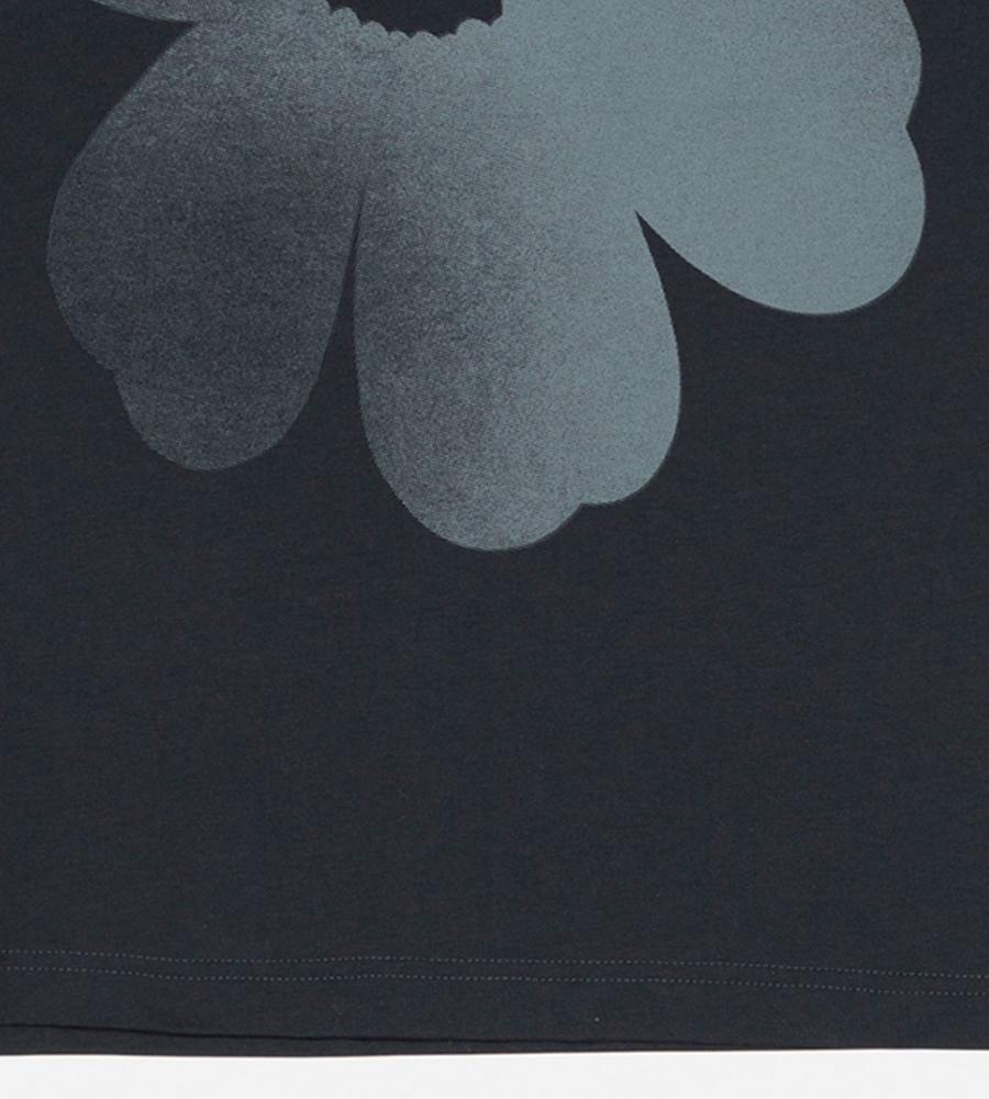 Unikkoのフラワーモチーフを大胆にプリントしたTシャツ。少しぼかしを加えることで、デザインにモダンなニュアンスをプラスしています。ゆったり着られるボックス型のリラックスフィットシルエットが、肩の力を程よく抜いた休日カジュアルを演出。裾はタックアウトでもバランスの良い着丈に調整しています。