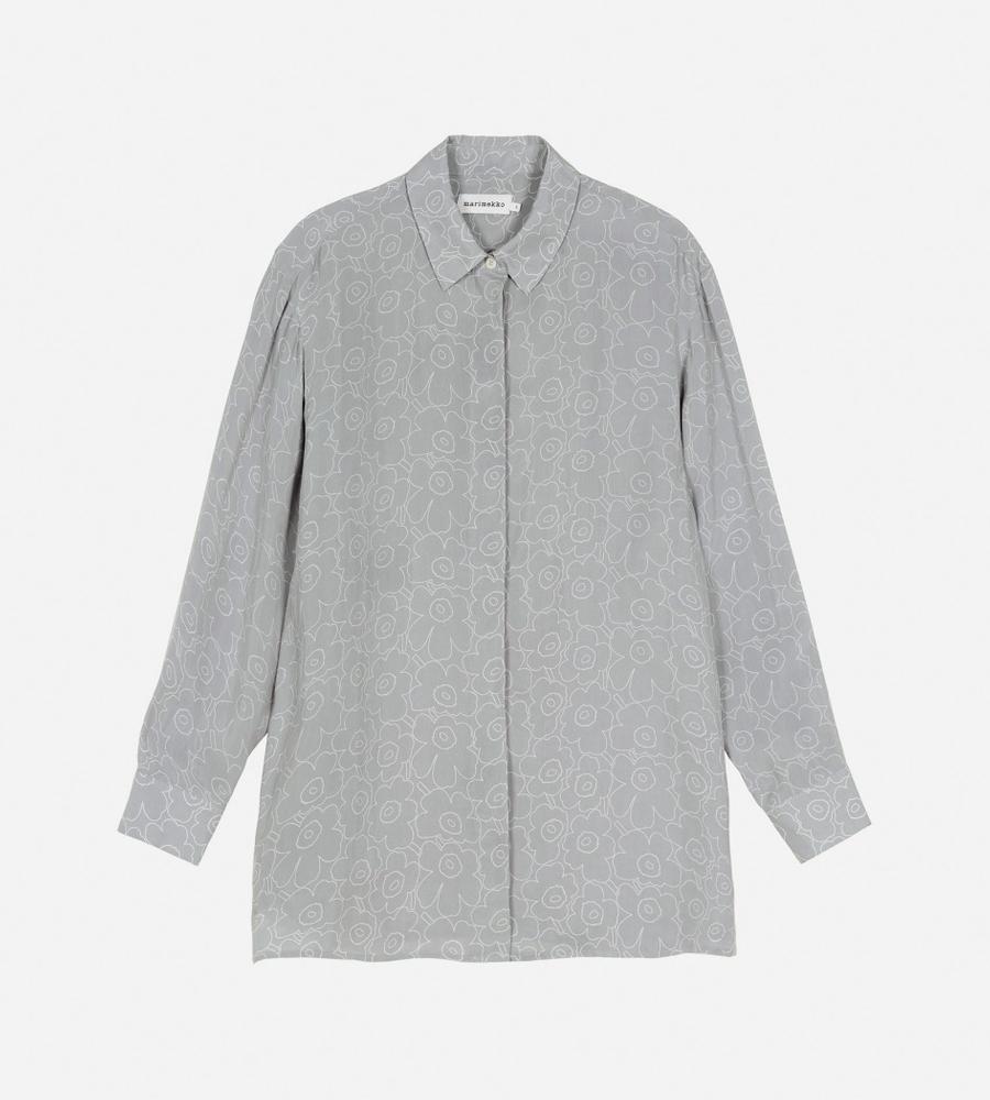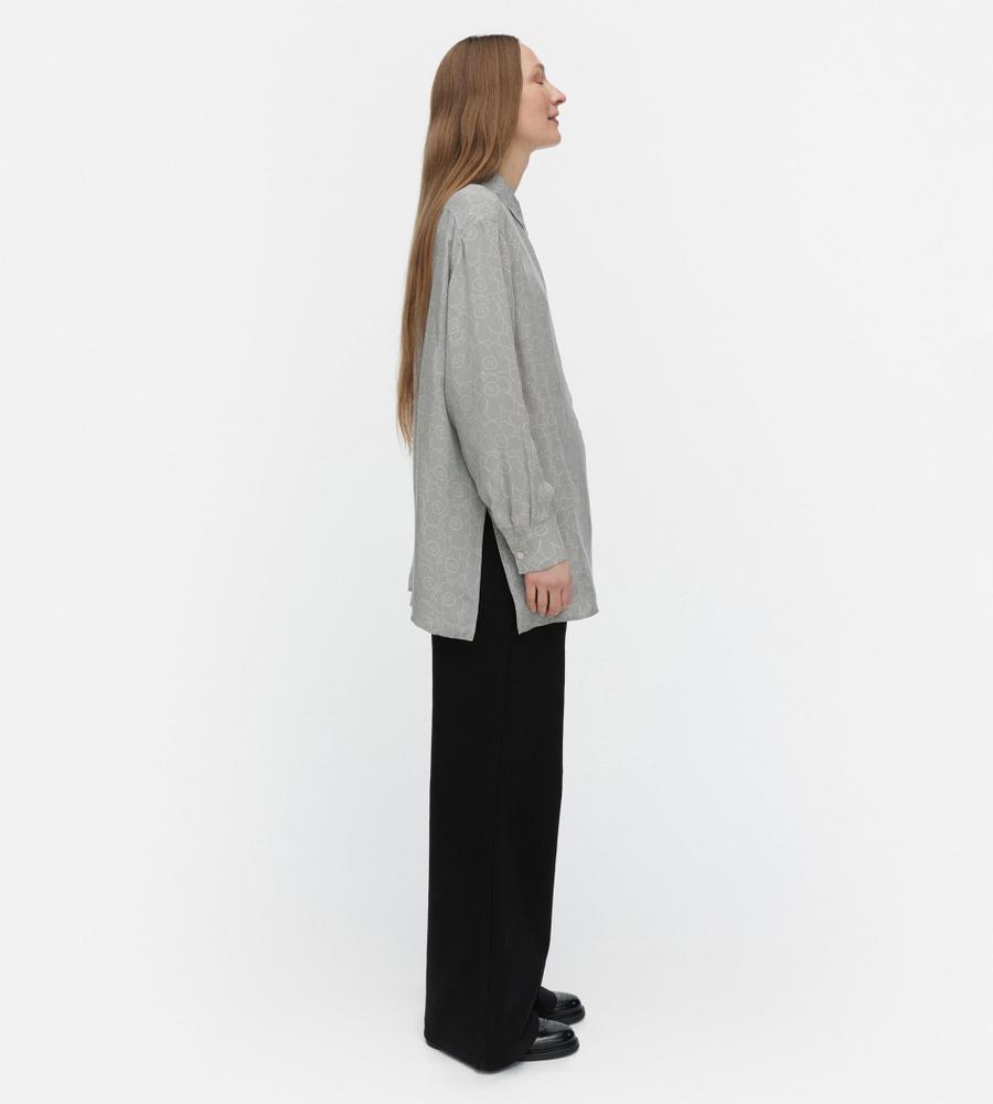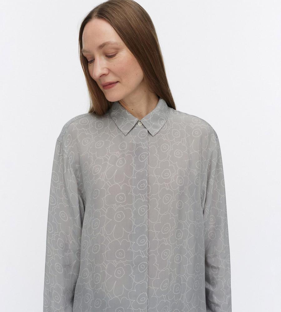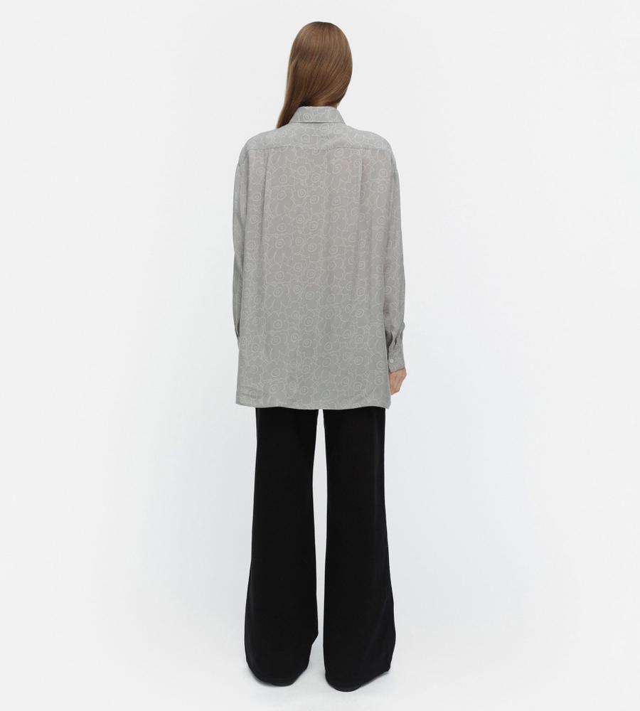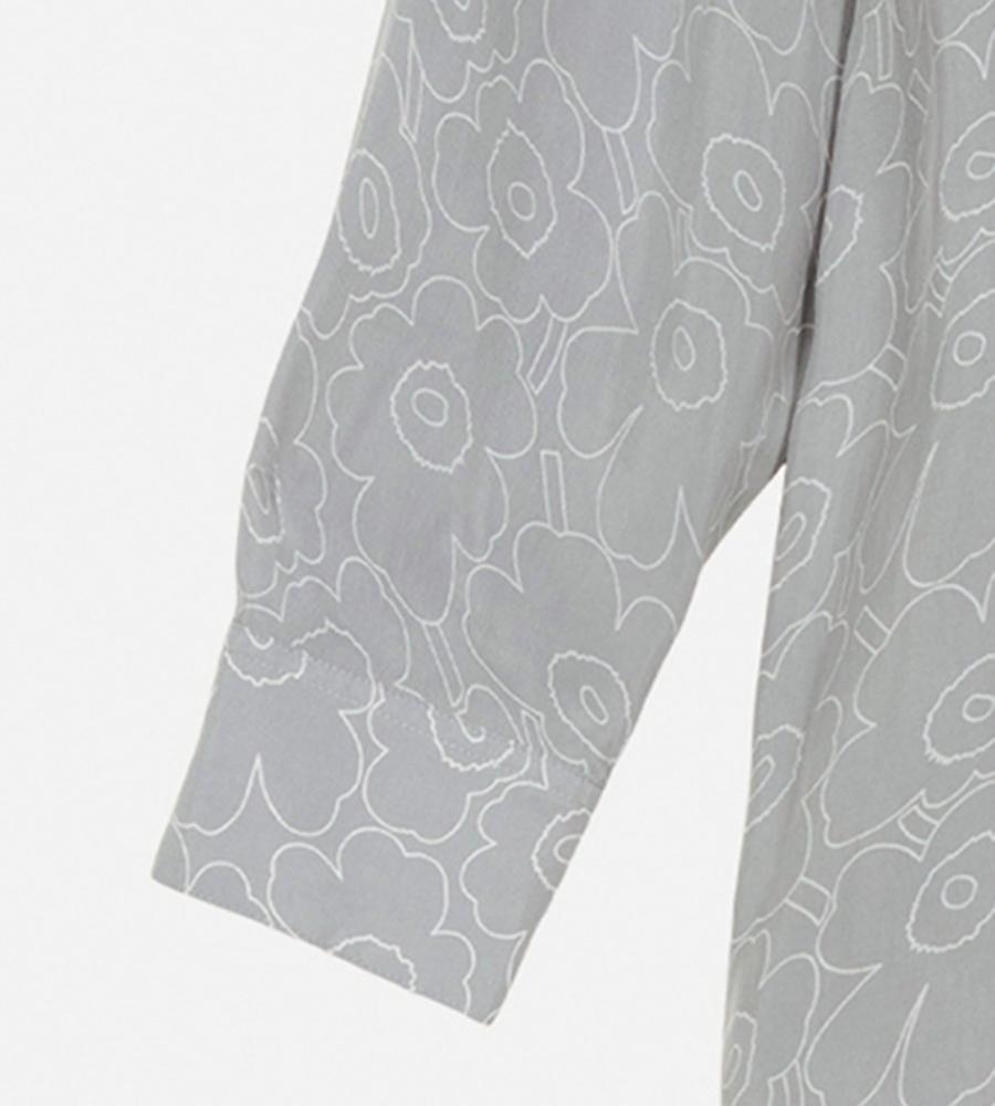 オーバーサイズでゆったりと着こなせるUnikkoパターンのロングスリーブシャツ。軽やかな素材感が魅力で気軽に羽織れるため、季節の変わり目に活躍します。サイドにロングスリットをほどこし、コンフォートなムードも取り入れました。ワードローブのニューベーシックとしておすすめの1着。