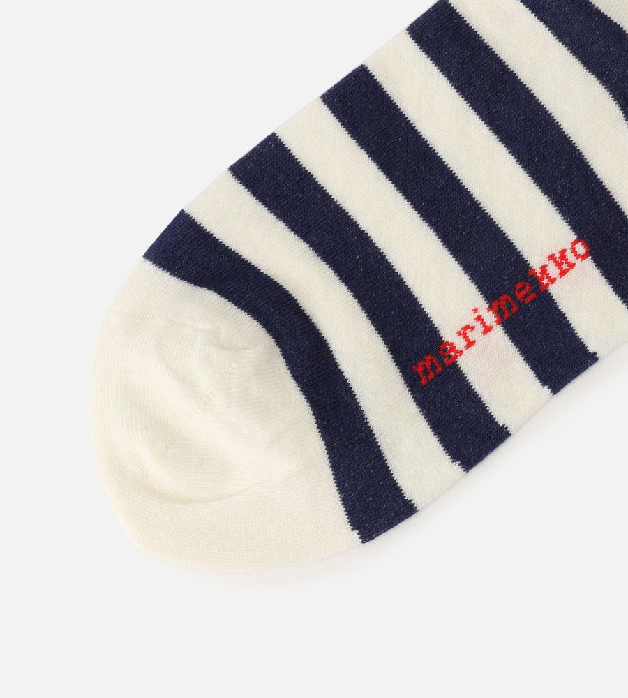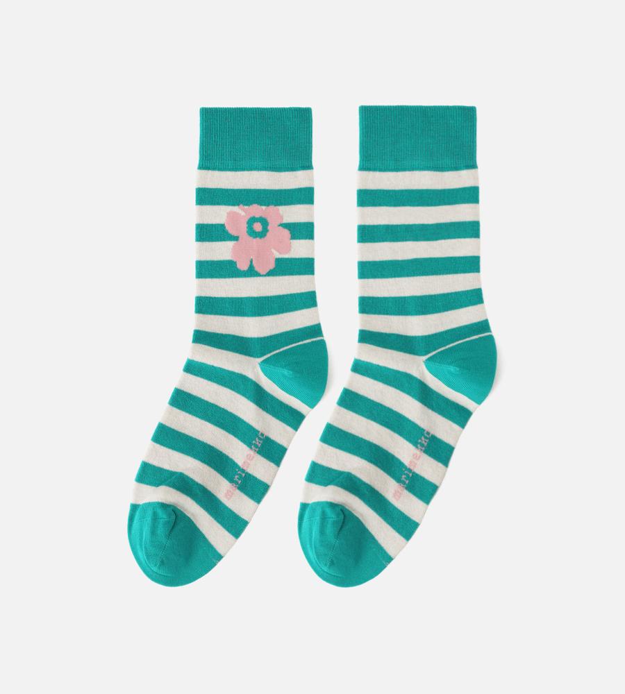 ボーダーの中からUnikko柄が浮かび上がるような、プレイフルな柄使いのソックス。存在感のあるボーダーで、足元の鮮度をぐんと高める1足です。使い勝手のよいクルー丈で、脚を見せるスタイリングなどにも活躍。スニーカーとの相性の良さも満点です。ギフトとしても喜ばれるアイテムです。