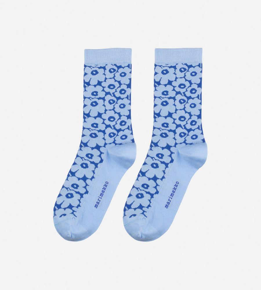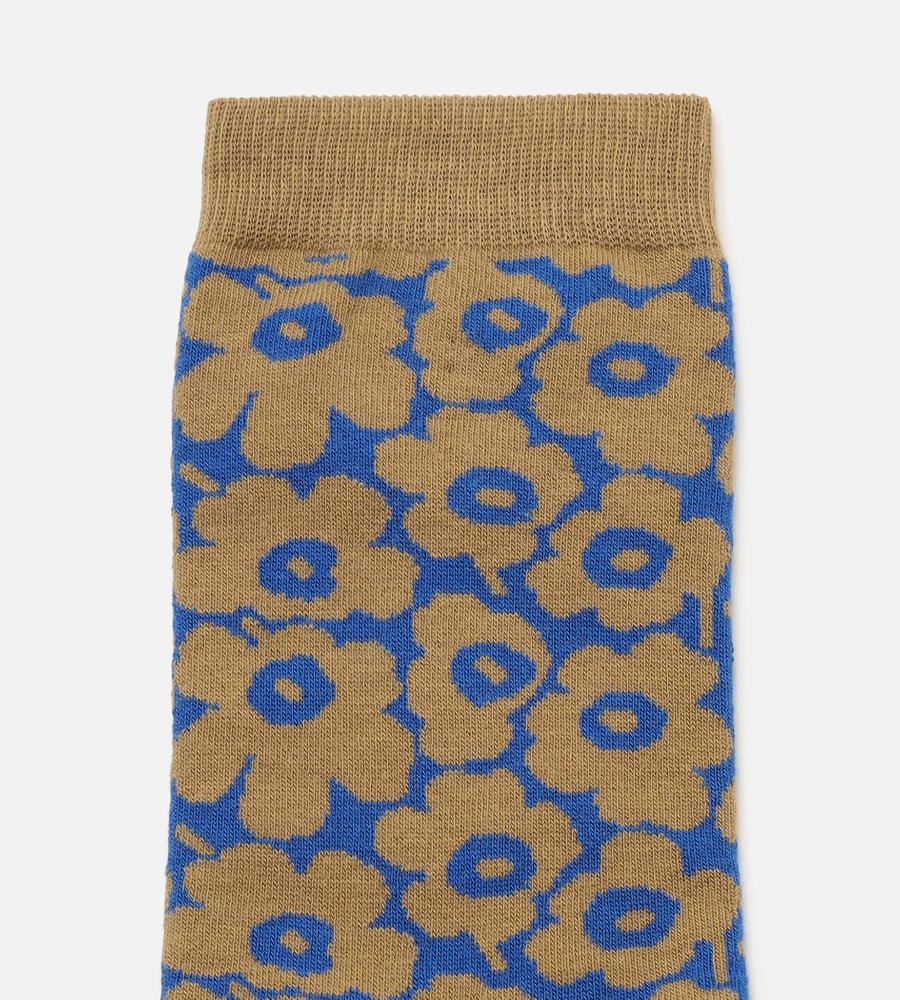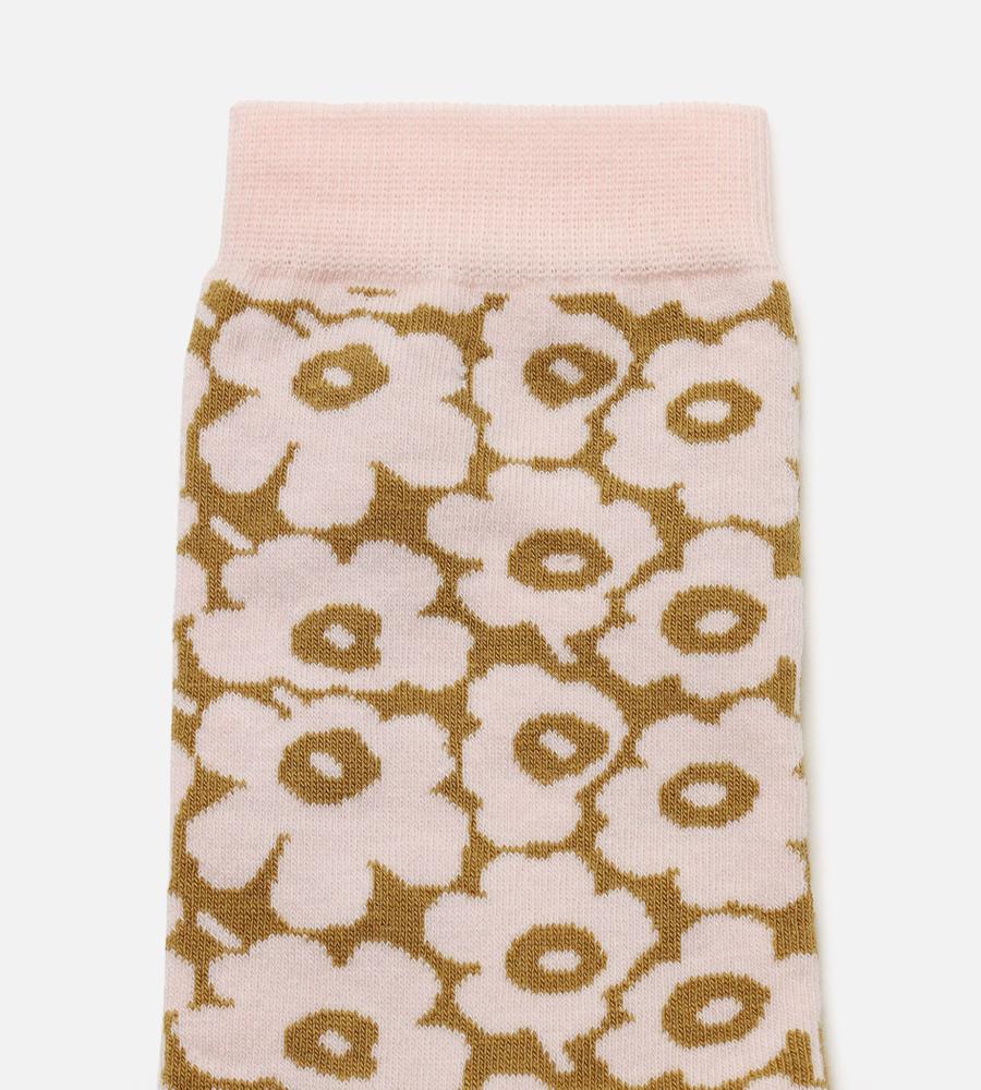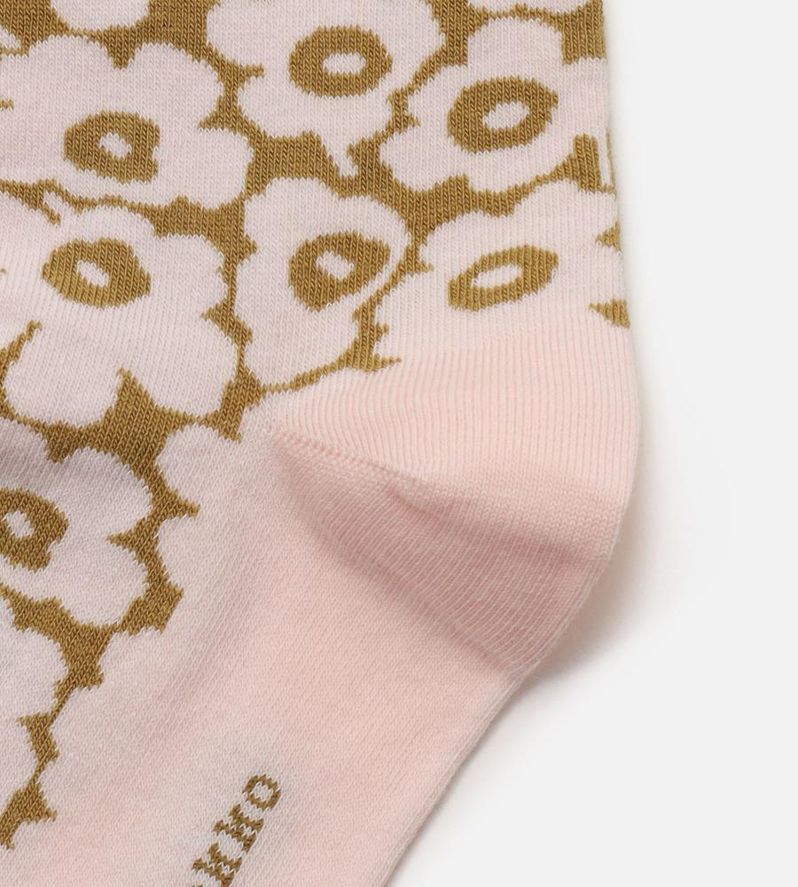 Marimekkoを代表するUnikko柄のミディ丈ソックス。細かなフラワーモチーフが華やかさのあるデザイン。履き口にはリブ編みのアクセントでズレ落ちにくい仕様。ツートンカラーの組み合わせもスタイリッシュなデザインポイント。コーディネートのアクセントになるスタイリッシュなアイテムです。
