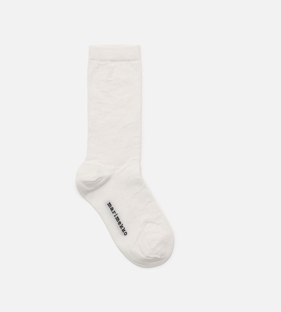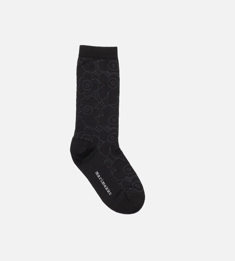 Marimekkoを代表するUnikko柄のセミロング丈ソックス。Unikko柄をラインで表現したスタイリッシュなデザイン。履き口にはリブ編みのアクセントでズレ落ちにくい仕様。様々なコーディネートにマッチするシンプル&モダンなデザイン。デイリーからお出かけまで幅広く活躍するアイテムです。