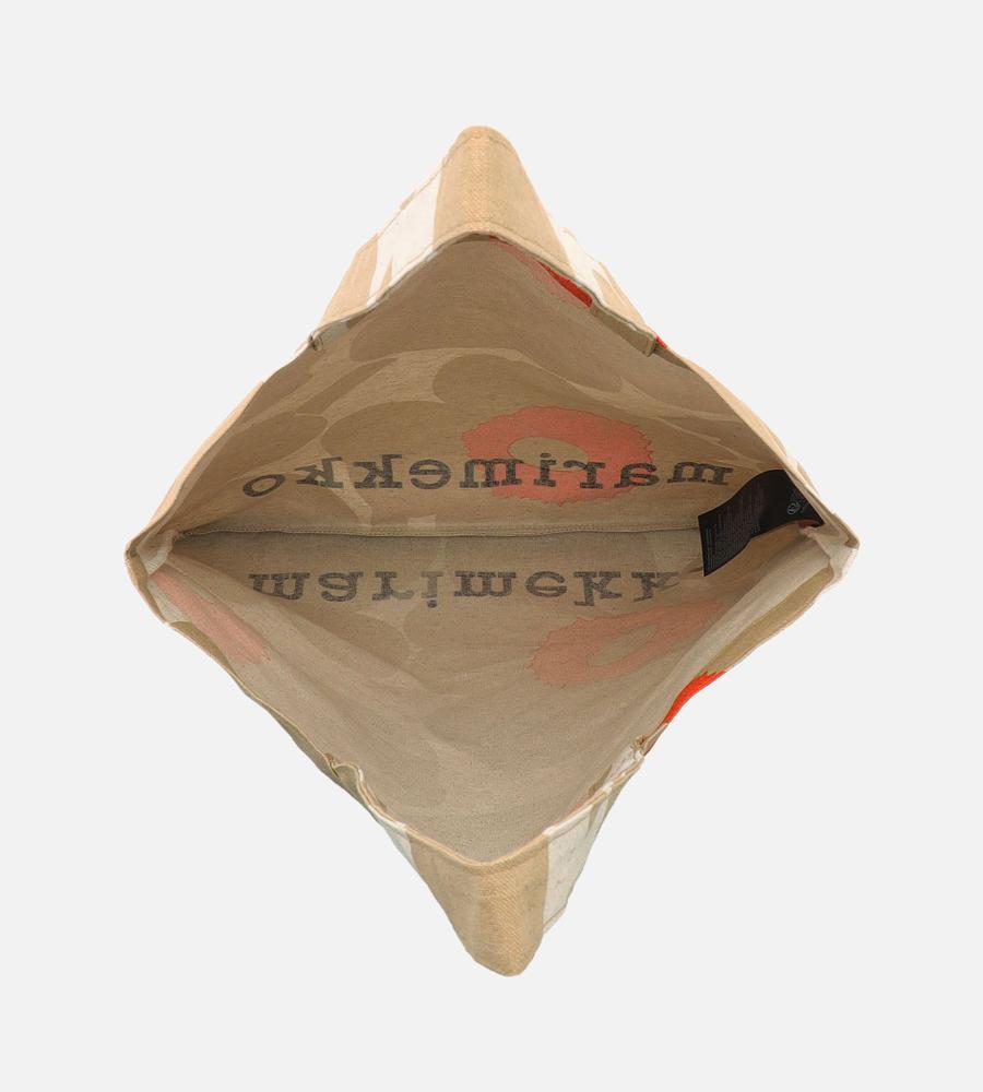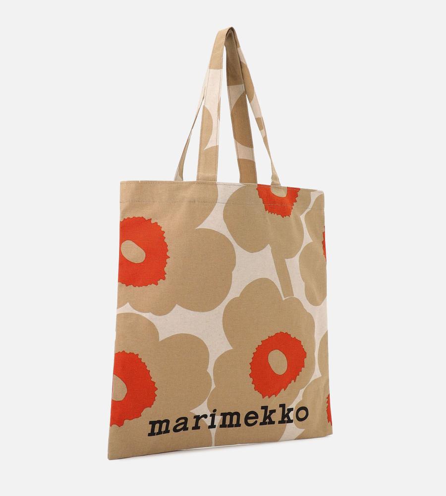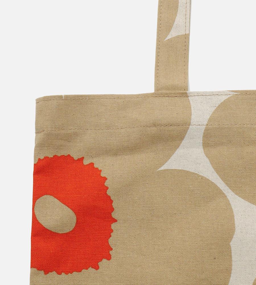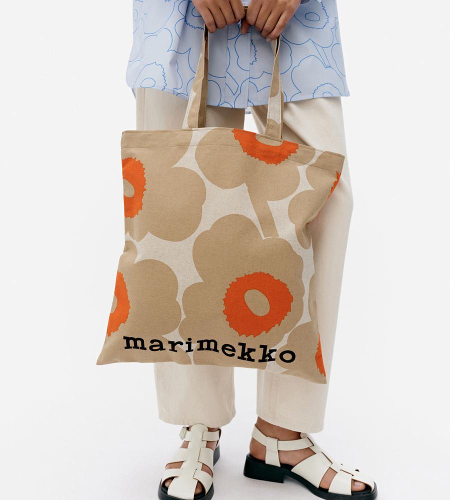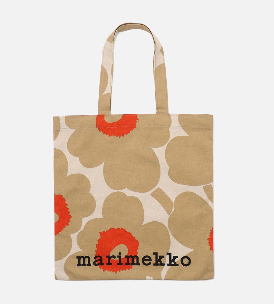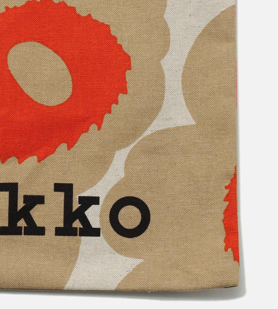 Marimekkoを代表するUnikko柄のファブリックトートバッグ。大きなフラワーモチーフの中心の差し色がデザインアクセント。下部のブランドロゴもスタイリッシュなデザインポイント。シンプルで使いやすいスクエア型。メインバッグ・サイドバックとして、毎日のコーディネートで活躍するアイテムです。