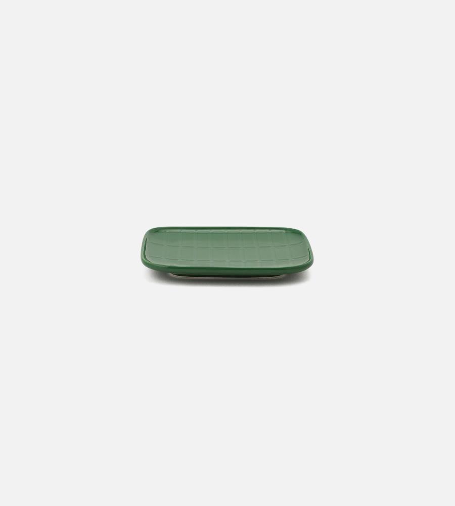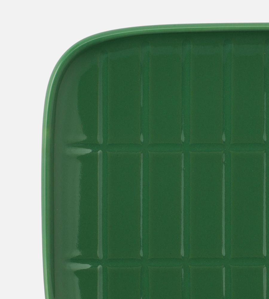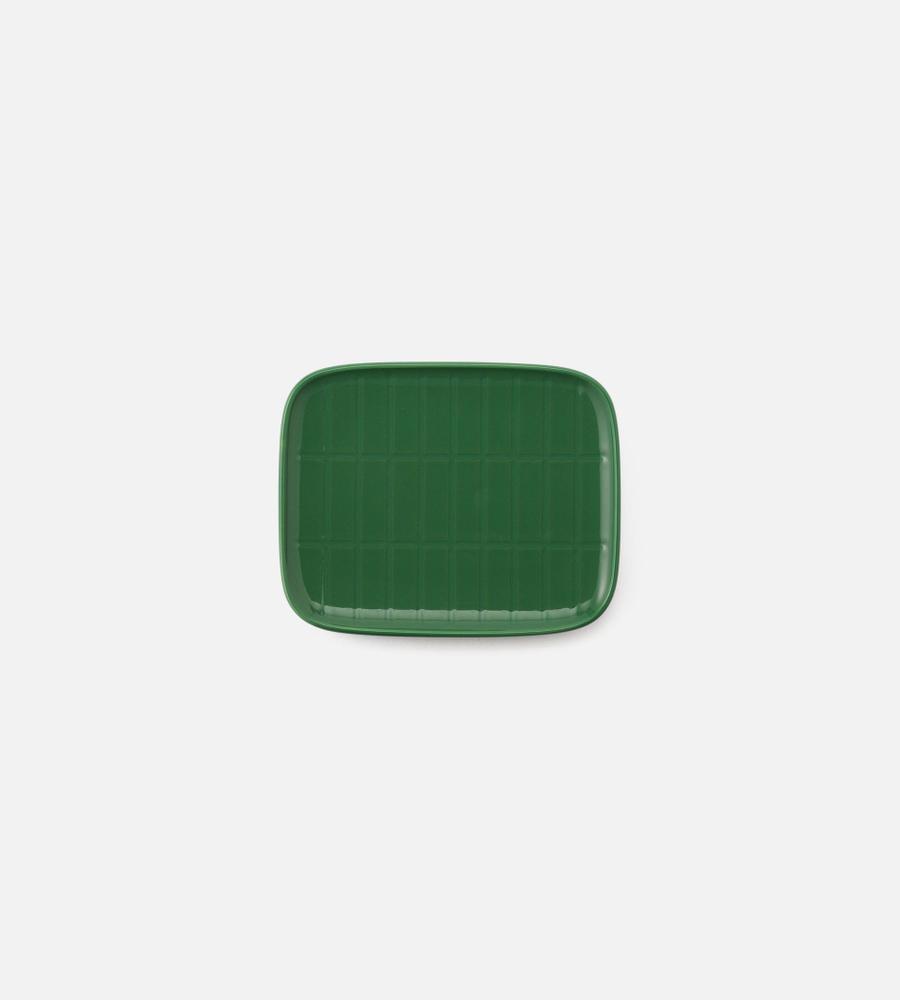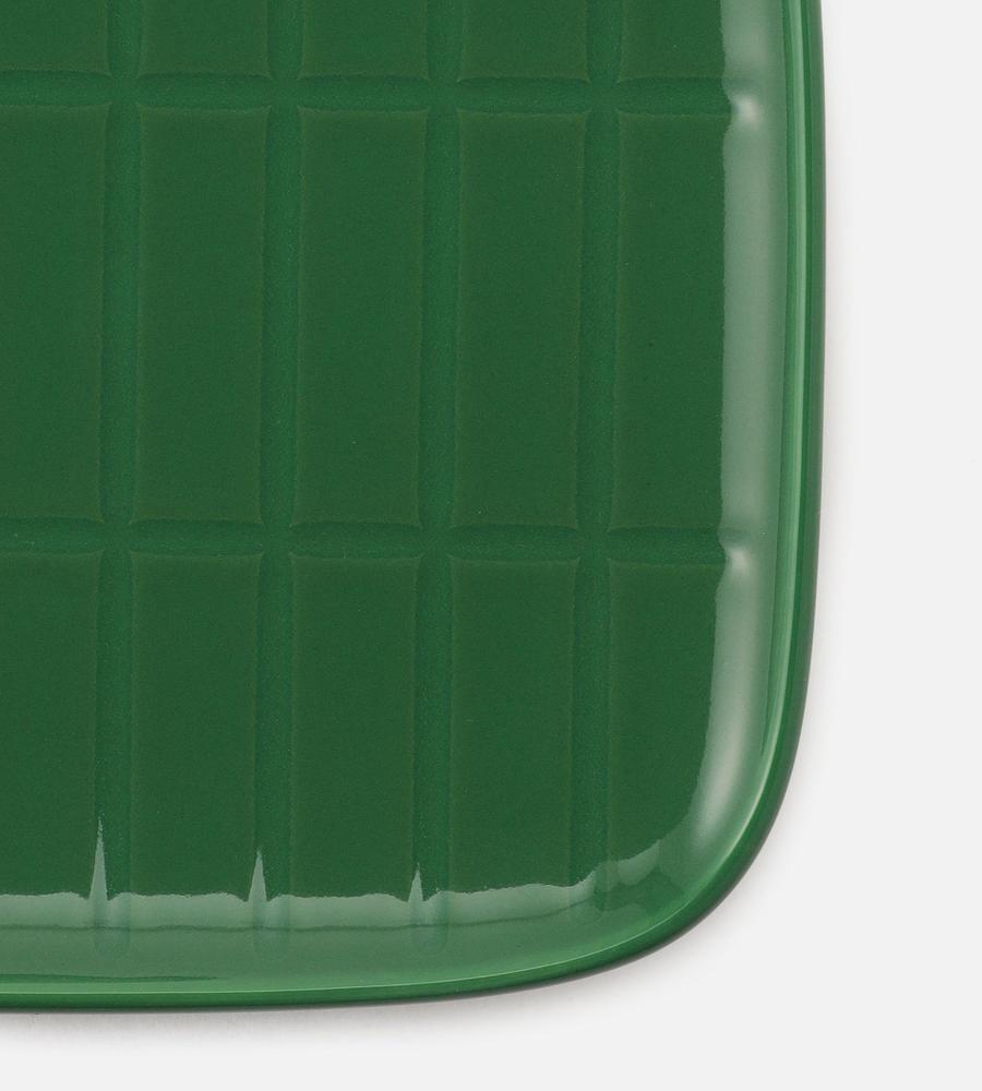 シンプルな佇まいと綺麗な発色で、テーブルコーデに華を添えるスクエアプレート。凹凸で表現された「Tiiliskivi」パターンが、レトロで温もりのあるアクセントになっています。縁が立ち上がったデザインはスイーツの盛り付けやソーサーとしても最適。お揃いのカップとの合わせ使いもおすすめです。