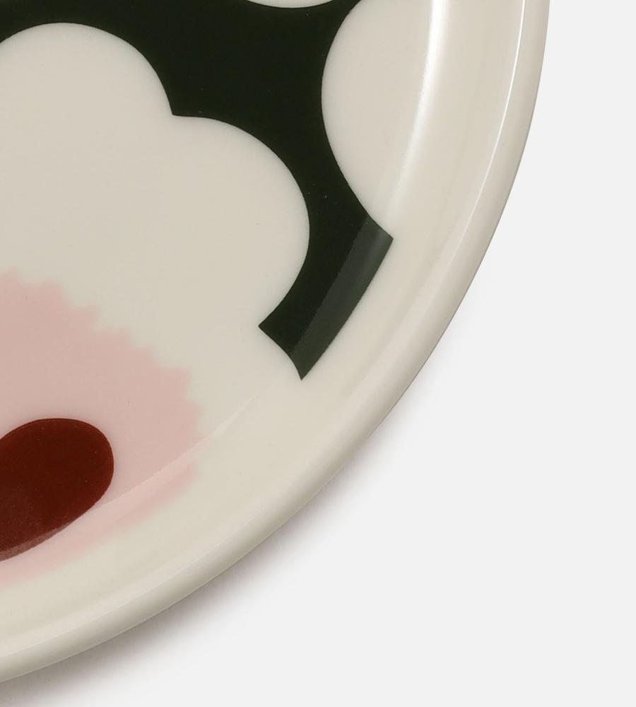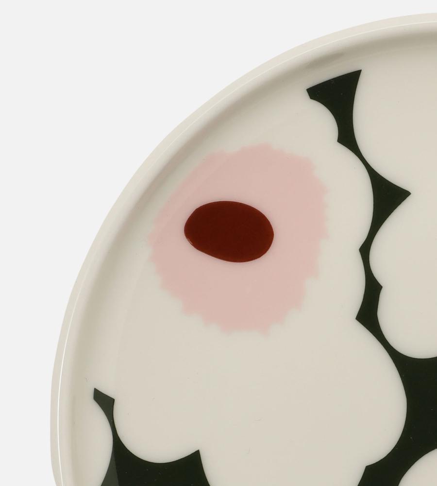 花をモチーフにしたUnikko柄が卓上で存在感を放つ日本限定のプレート 。フチが少し高くなった丸型フォルム。小ぶりな13.5cmサイズは使い勝手が良く、前菜やスイーツなどの取り分けにも活躍。ホワイトとダークグリーンをベースに、愛らしいライトピンクをアクセントにプラスしています。