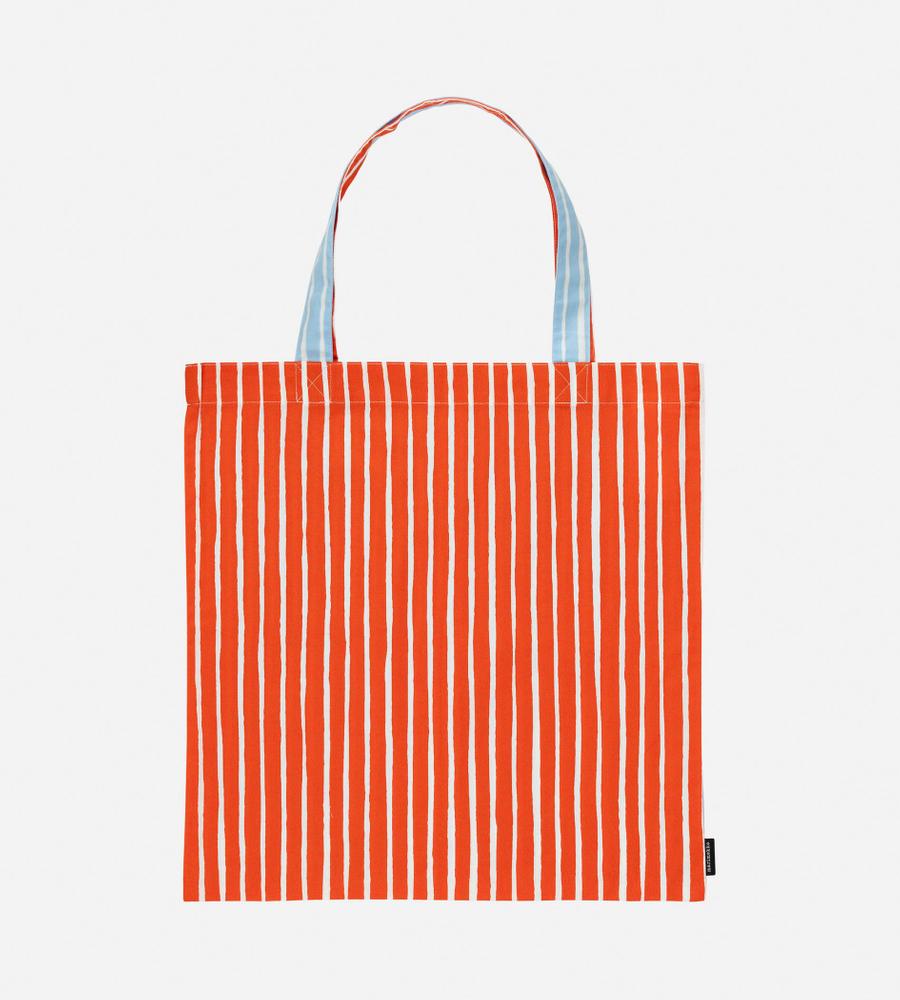 ハンドブラッシュのような線幅の異なるストライプが印象的なPiccolo柄のトートバッグ(44×43cm)。シンプルで使いやすいスクエア型。両面プリントの色違いのデザインで、スタイリングに合わせて異なる雰囲気を楽しめます。メインバッグ・サイドバックとして、毎日のコーディネートで活躍するアイテムです。