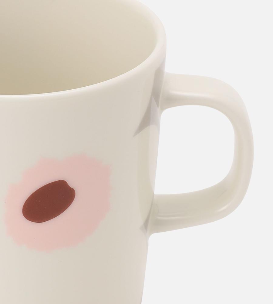 大きな花モチーフが可愛らしいUnikko柄のマグカップ(250ml)。ホワイト×ライトグレーの柔らかな色合いが、優しく穏やかな雰囲気を演出します。使いやすいシンプルなフォルムも洗練された印象。毎日の食卓はもちろん、デスクワークや読書のおとも、テーブルコーディネートのアクセントなどにも最適です。