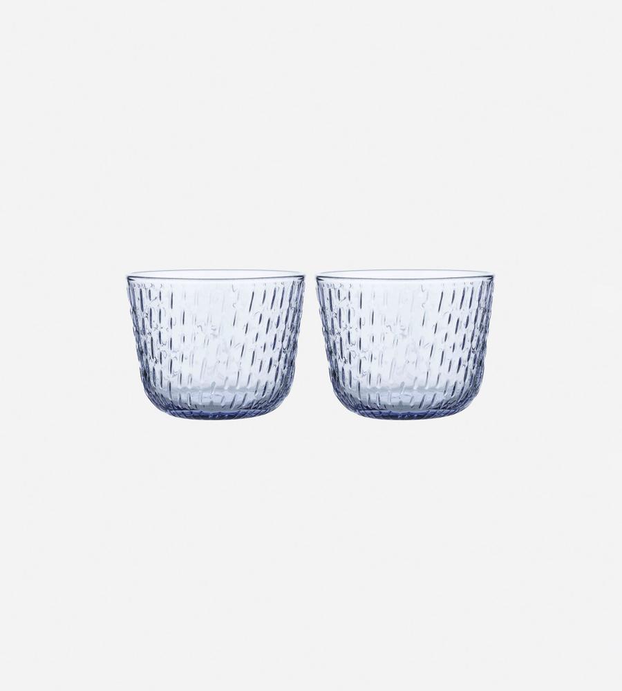北欧の秋、様々な秋雨の様子をブランドらしい世界観とともに凹凸の模様で表現したSyksyグラスタンブラーセット。手に馴染むコンパクトなサイズ感。日常使いにはもちろん、ギフトにも最適なボックス入りの2個セットです。透明感が美しい、儚げなラベンダーカラーで仕上げています。