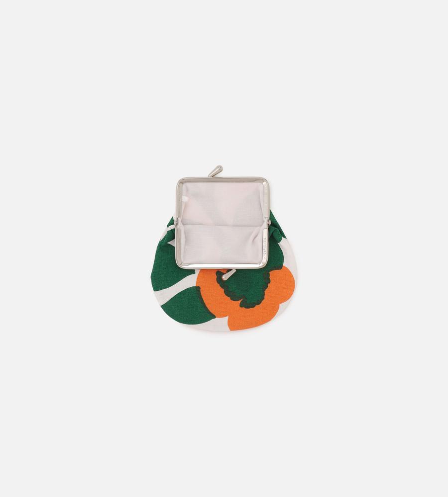 豊かな自然を感じられるGreen Greenパターンのがま口ポーチ。1975年にテキスタイルデザイナーの脇阪 勝二が手がけたデザインで、花がテーマになっています。コットン100%素材を採用。ひょうたん型のフォルムが愛らしく、小物類の収納に活躍します。