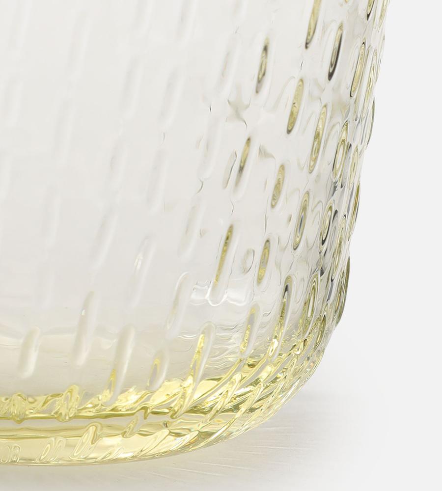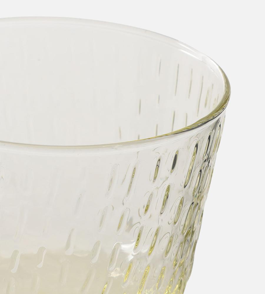 職人により作られている吹きガラス製のグラスセット(200ml)。秋を意味するSyksyガラスシリーズは、秋の様々な雨からインスピレーションを受けた美しいデザイン。凹凸のあるレリーフのような表面感がデザインポイント。便利な2個セットでプレゼントにも最適。テーブルコーディネートのアクセントになるアイテムです。