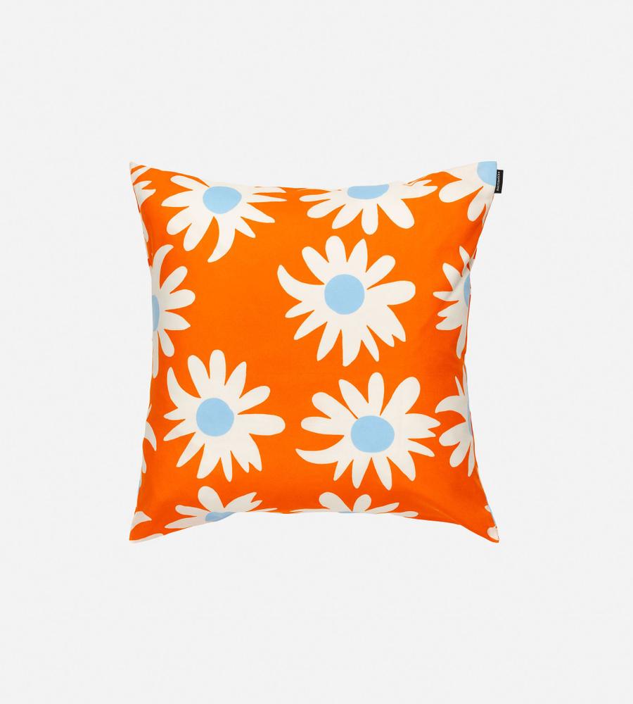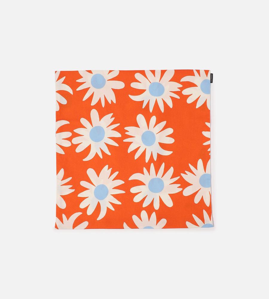 少しいびつな花びらで、花の持つ個性を巧みに描き出した「Rakastaa」柄のクッションカバー。さっぱりとした風合いのコットン素材を用いて、夏らしい明るい表情に仕上げています。インテリアコーディネートに華やかさを添える、50cm四方の大きさ。ご自宅でお手入れできるのもうれしいポイントです。