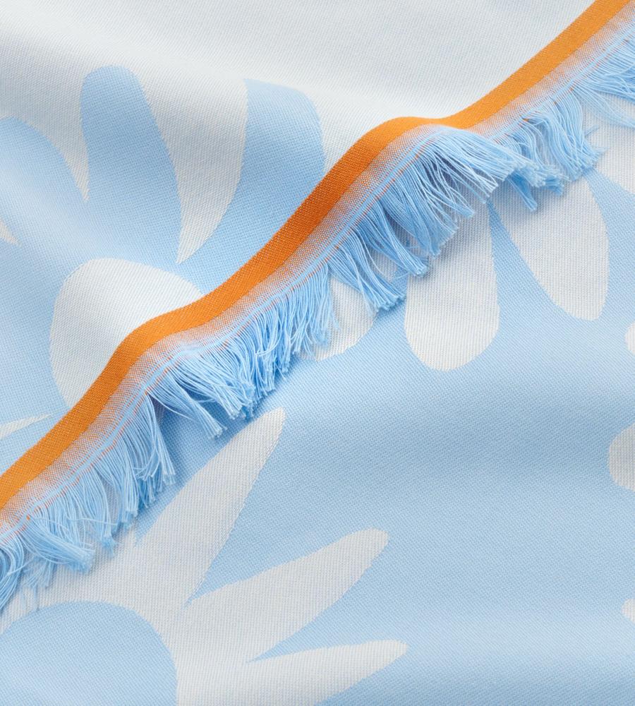 愛らしい雰囲気の花をモチーフにしたタオル。洗顔や洗髪はもちろん、スポーツやスパなど幅広いシーンで活用できるサイズ感です。両端のフリンジ×ラインがアクセントとして効いています。ロゴ入りタグをループとしてあしらっており、フックに掛けて使うことも可能です。誕生日などのギフトとしても喜ばれます。
