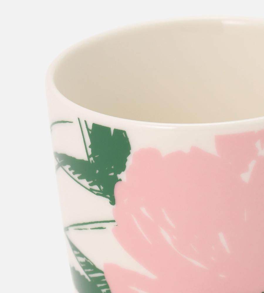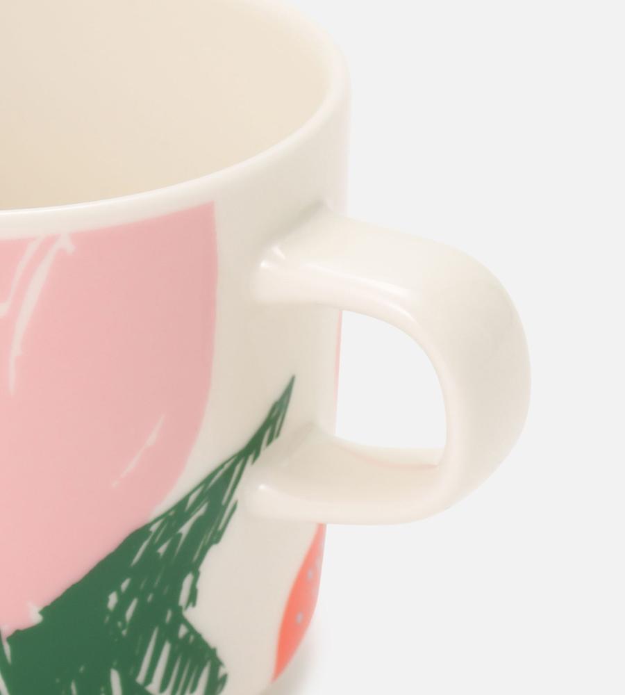 すっきりとしたシルエットに華やかなPuutarhakutsut柄が映えるコーヒーカップ。柄はガーデンパーティーがモチーフです。小ぶりのハンドルはアクセントとしても効いています。お揃いのボウルやプレートとお使いいただくのも、テーブルの統一感がアップして素敵。普段使いにも、おもてなしにも活用できます。