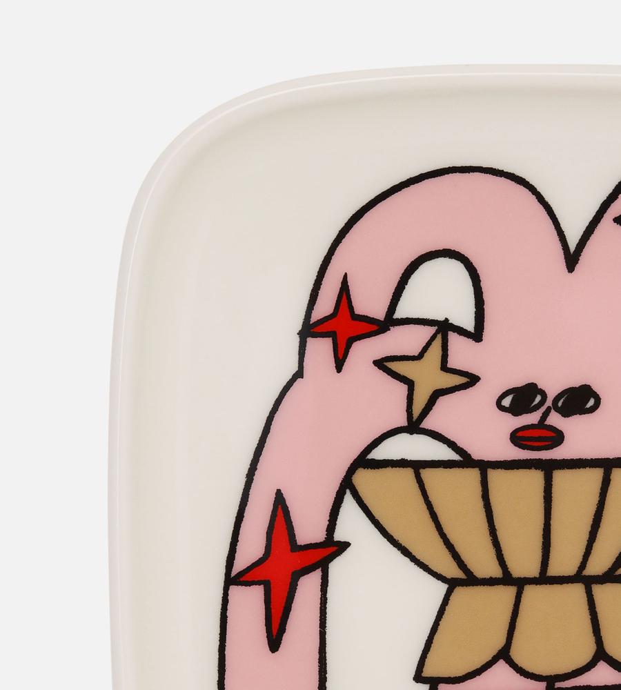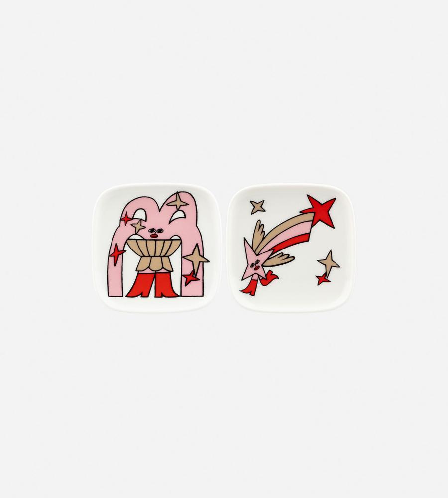 Aureate Glow 異なる絵柄を組み合わせたプレートセット 10×10cmサイズ。卓上に楽しい雰囲気を運んでくれるデザインが魅力です。小ぶりなサイズ感はスイーツをのせたり、アクセサリーを置くプレートとしても活躍してくれそう。