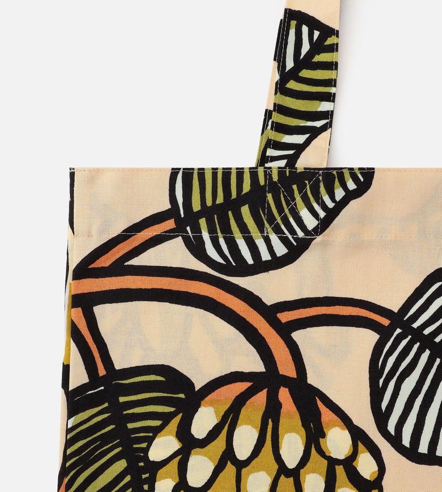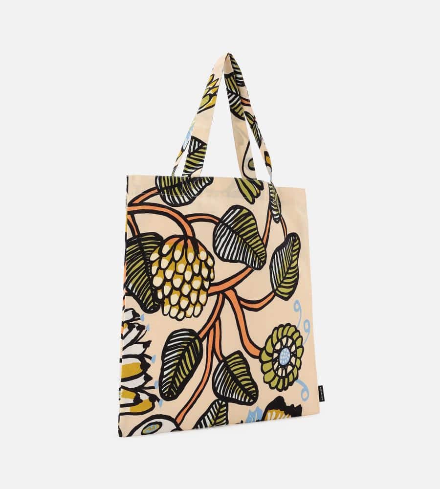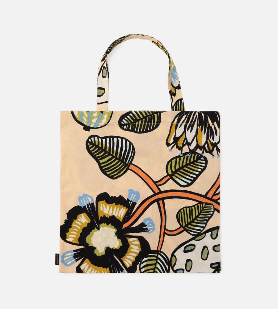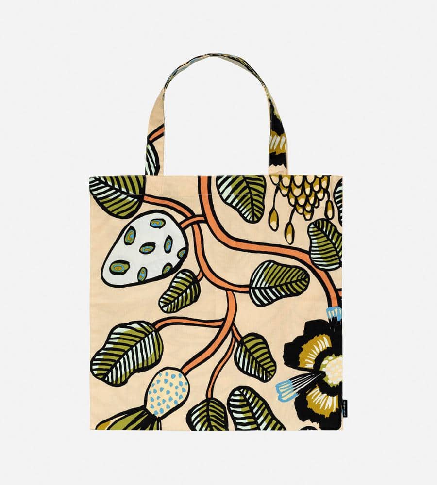 「ティアラ」を意味する「Tiara(ティアラ)」は、Erja Hirviがデザインしました。使い勝手の良い実用的なサイズ感のトートバッグ。落ち着いた配色でありながら大胆に描かれたモチーフが目を引くデザインで、スタイリングに差し色効果を発揮します。サイドにロゴ入りのタグを配置しています。