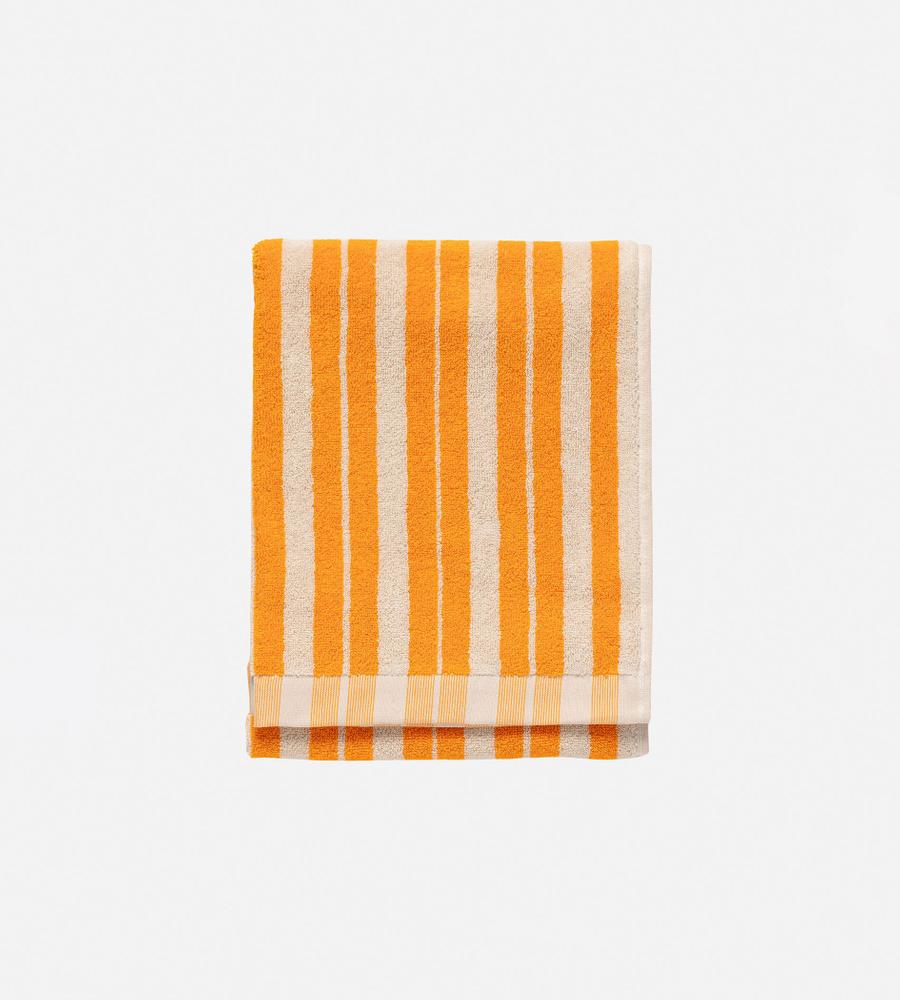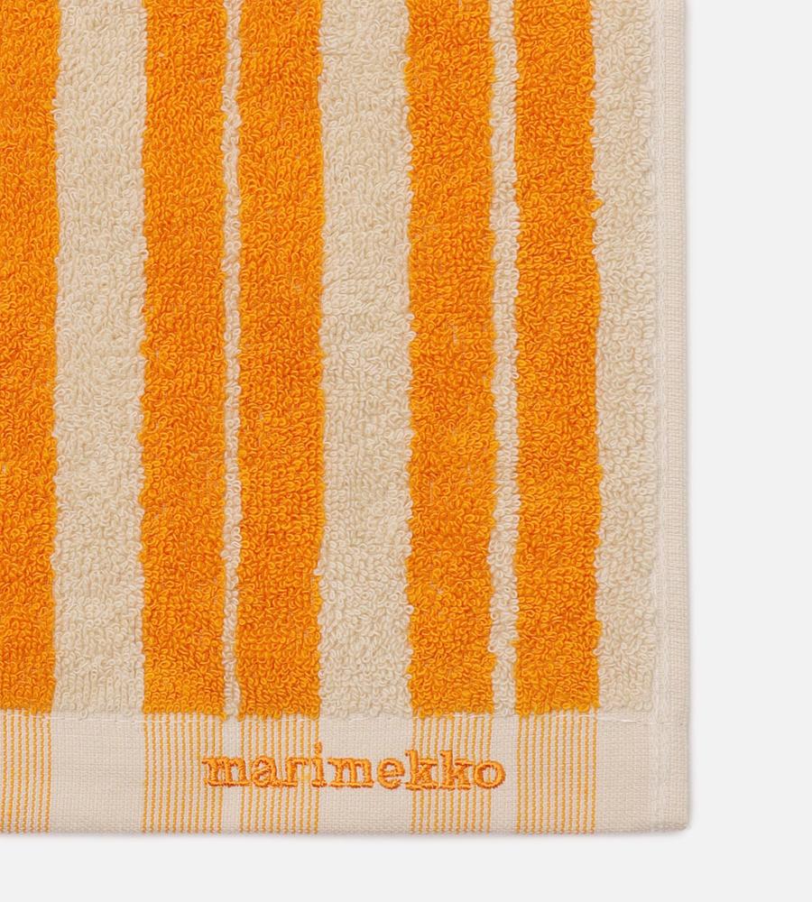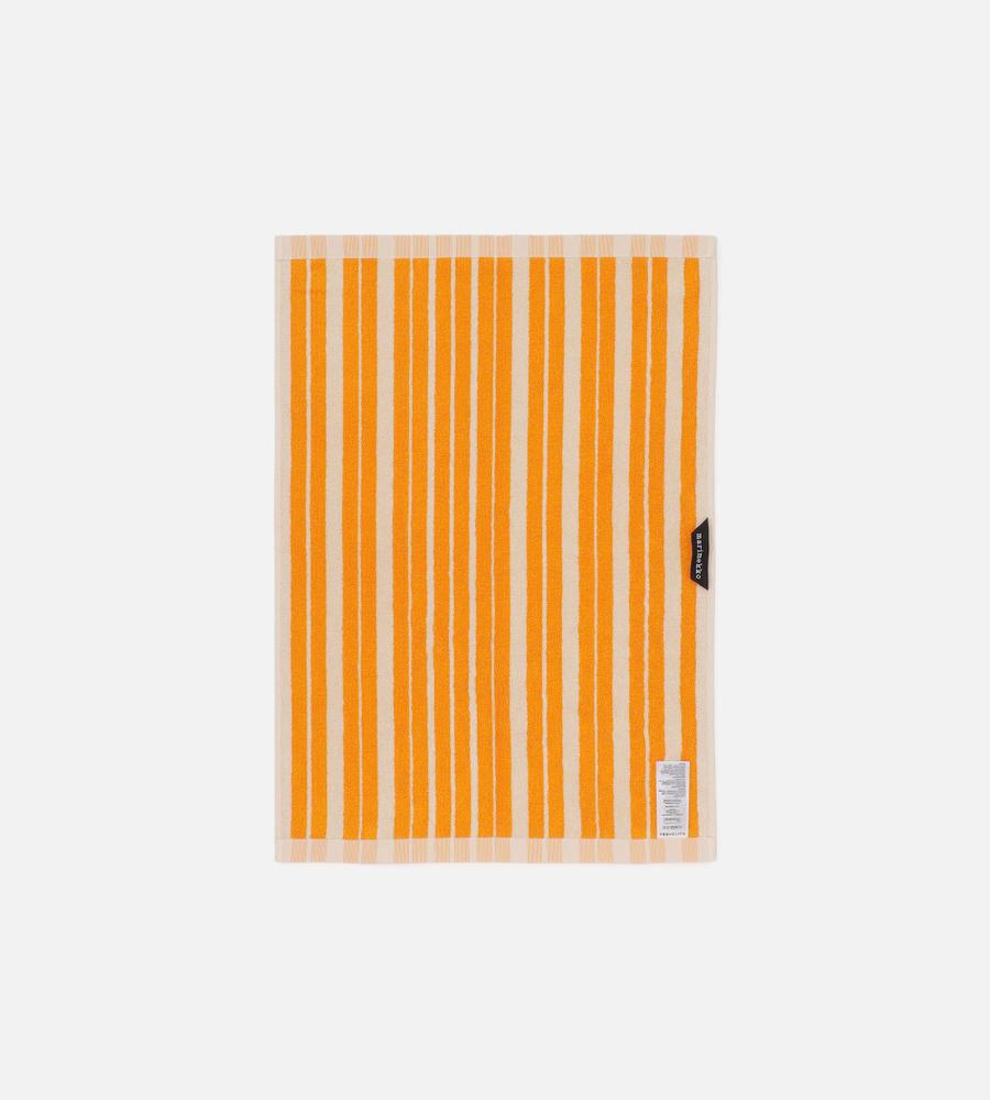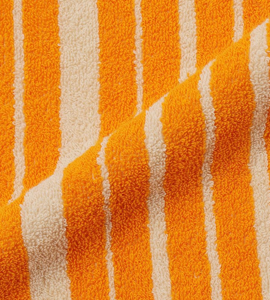 線路をモチーフにした、ランダム感があるストライプのRaideパターンのハンドタオル。鮮やかなカラーリングが目を引きます。ロゴの刺繍のワンポイントもあしらっています。ループがセットされており、フックなどにかけて使うことも可能。コットン100%素材ならではの優しく柔らかな肌触りも魅力です。