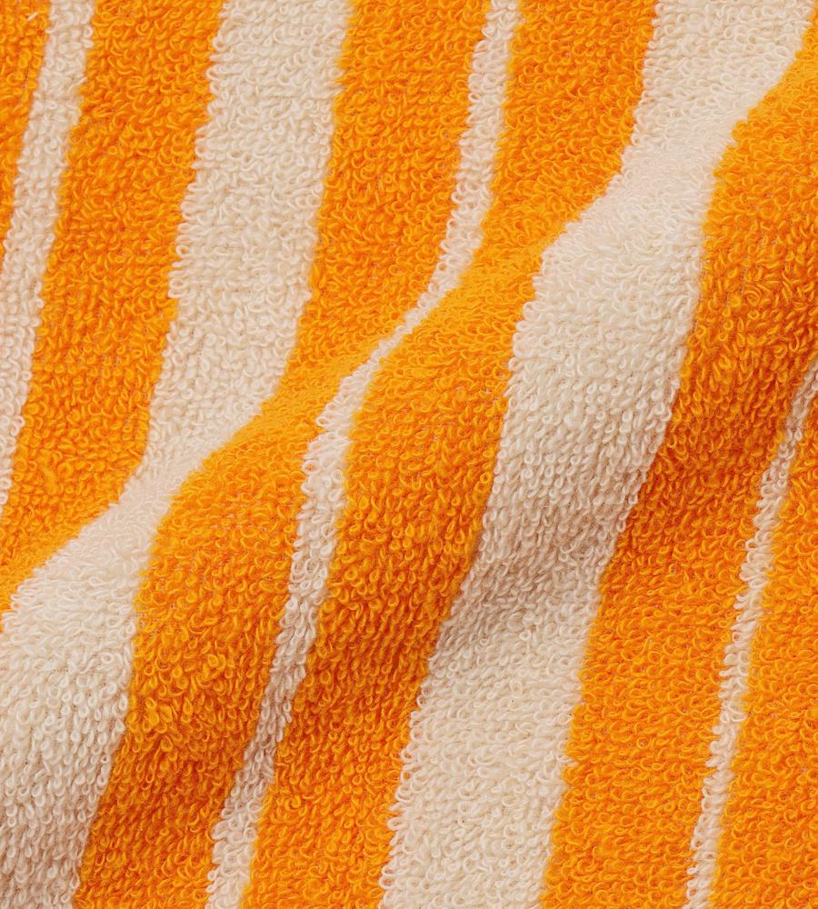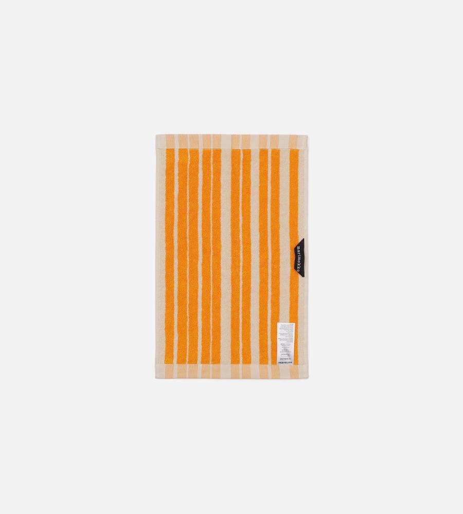 目を引く鮮やかなカラーリングでデザインしたRaideパターンのゲストタオル。端にはロゴ刺繍のワンポイントをあしらっています。30×50cmの大きすぎないサイズ感は携帯にも便利です。ループをセットしており、フックなどにかけても使えます。肌触りが柔らかく心地よいコットン100%素材です。
