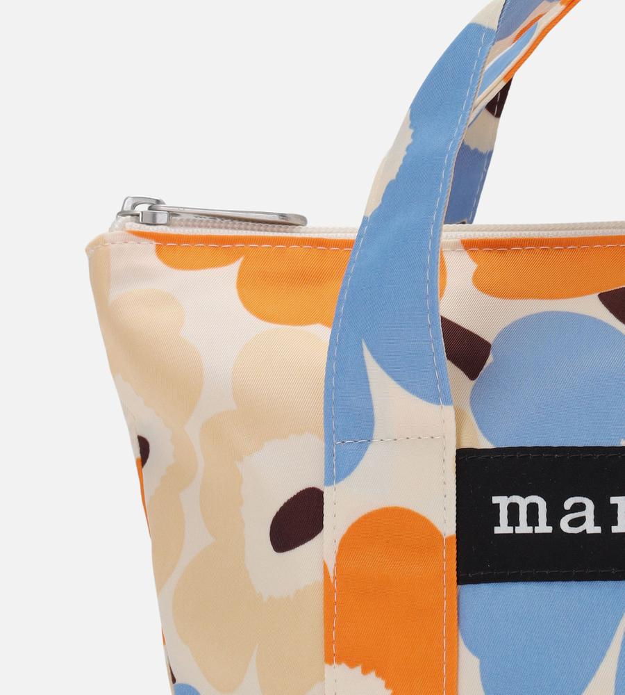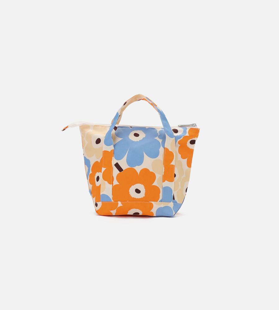 明るくポップな雰囲気のカラーリングでUnikko柄をデザインしたコスメティックバッグ。フロントにはロゴをバランス良くレイアウトしています。間口は開閉がスムーズなファスナー仕様。マチ幅が適度にあり、小ぶりながらも収納力の高いアイテムです。ランチトートやサブバッグとしてもお使いいただけます。