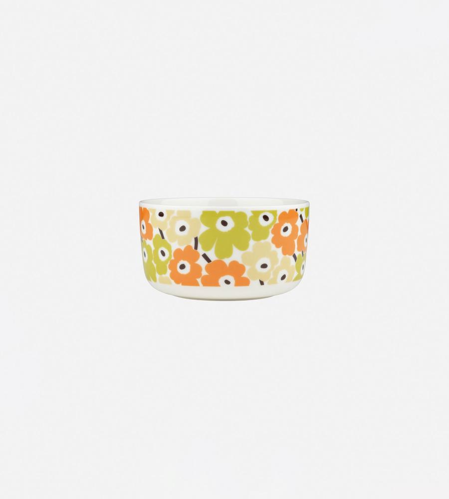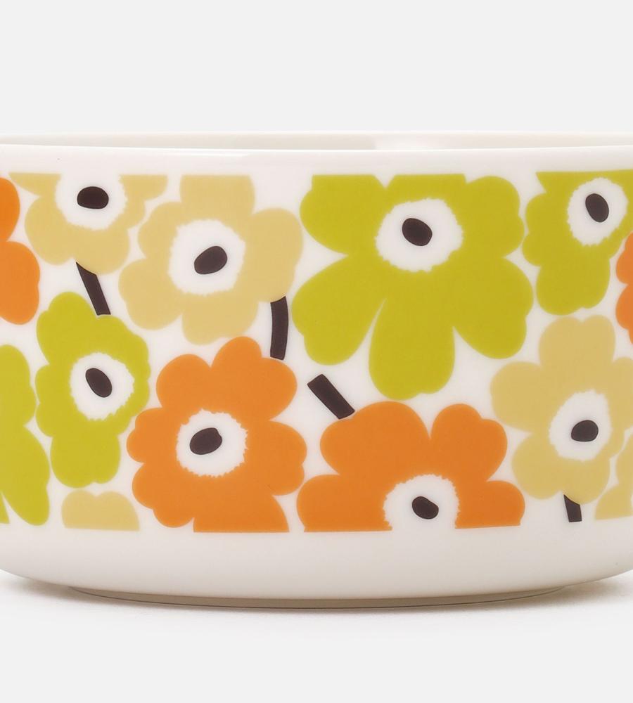 ライトグリーンやライトイエローで華やかに仕上げたUnikko柄のボウルです。深さがありサラダやフルーツ、ヨーグルトやシリアルなどを盛り付けるのに使いやすい500mlサイズ。食卓に彩りをプラスしてくれるアイテムです。