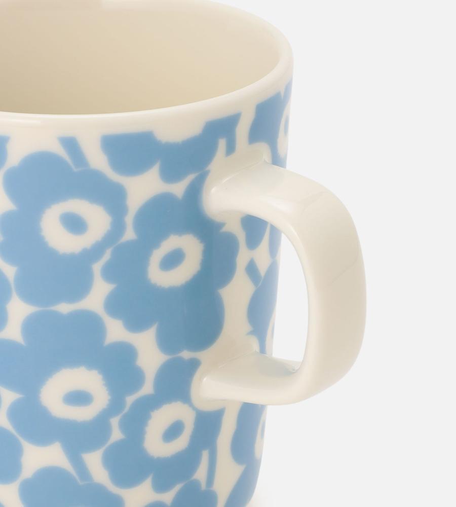 爽やかなライトブルーカラーのUnikko柄をあしらったマグカップ(250ml)。食洗機、電子レンジ、冷凍庫で使用可能な便利な仕様です。使いやすいシンプルなフォルムと小ぶりな持ち手も洗練された印象。毎日の食卓はもちろん、デスクワークや読書のおとも、テーブルコーディネートのアクセントにも最適です。
