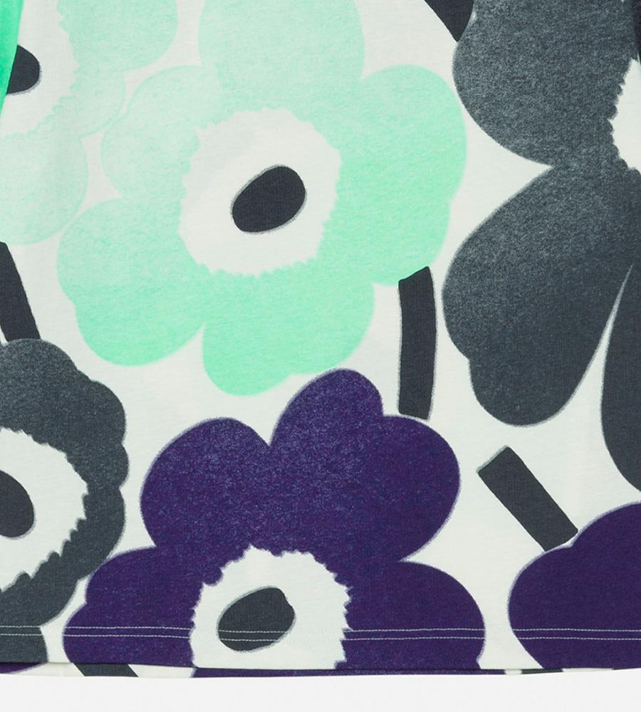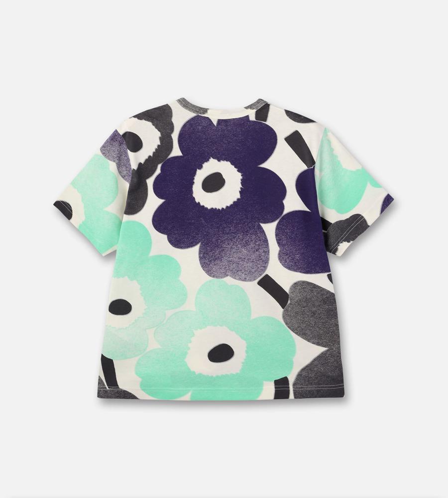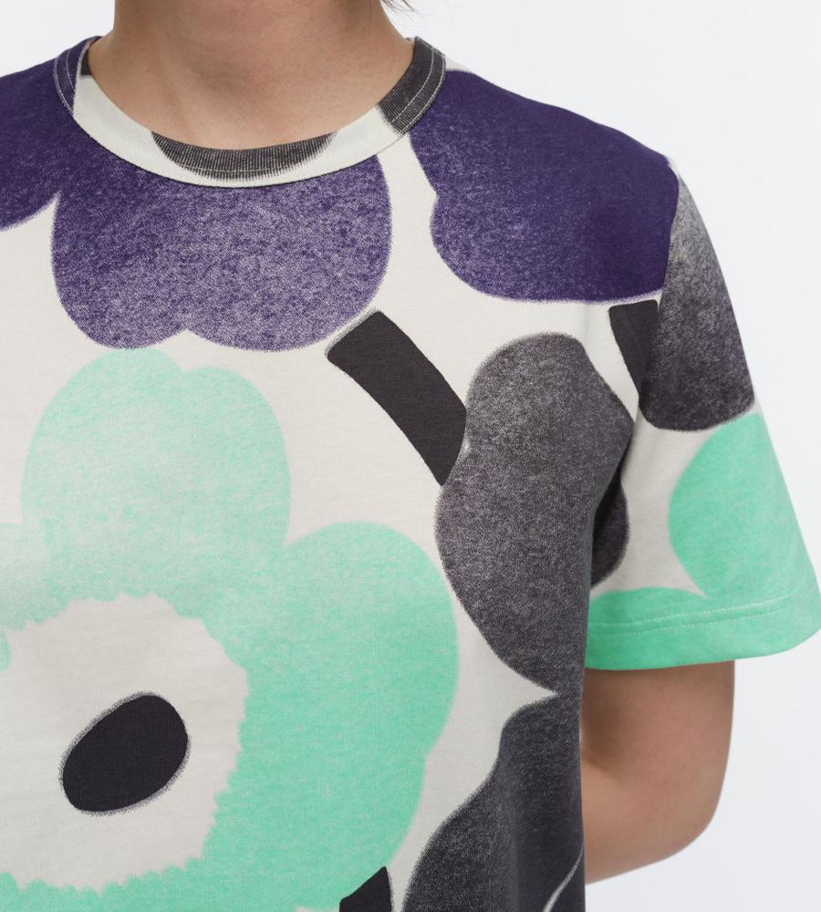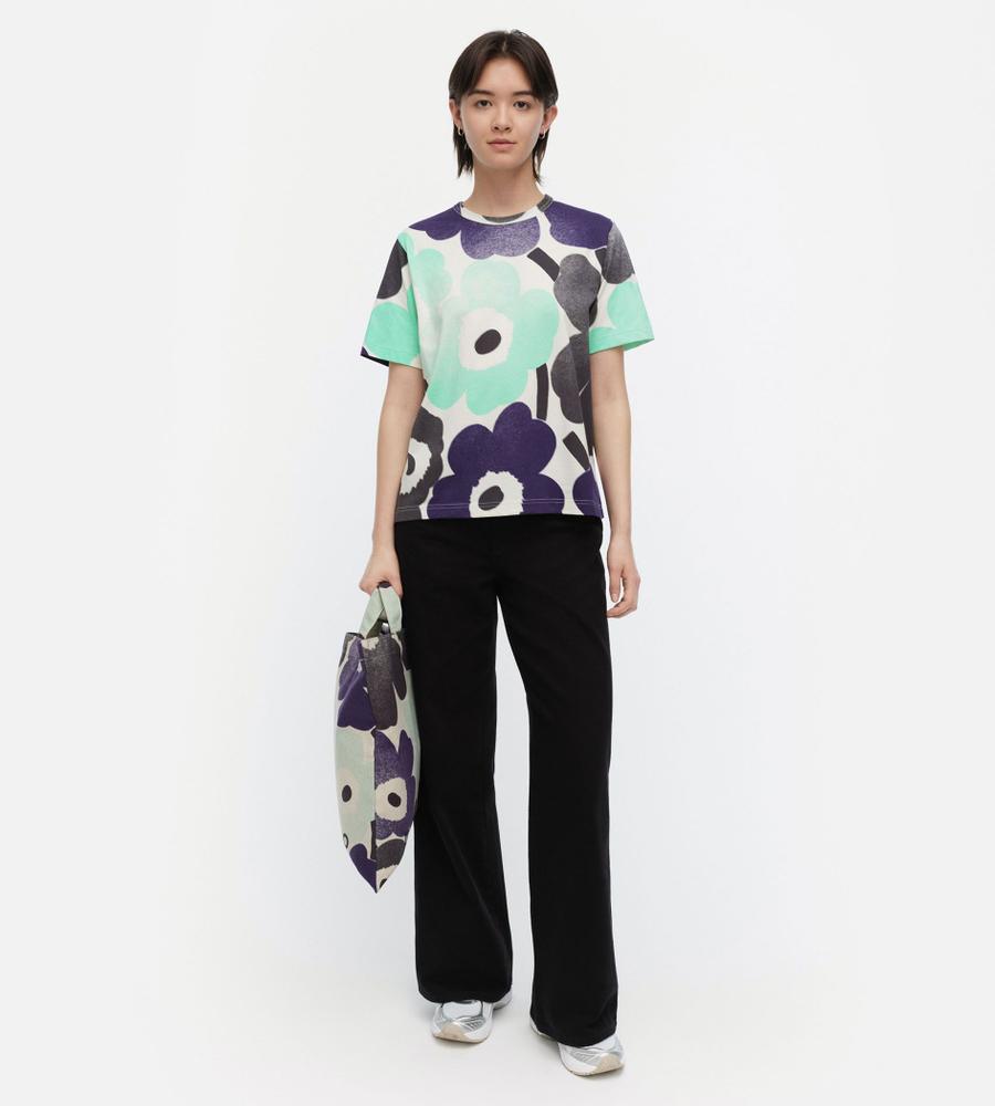 美しい色合いのUnikko柄が着こなしを引き立てるTシャツ。ほど良いフィット感のあるシルエットで、スマートなコーディネートに。素肌にやさしいコットン素材も、着心地良さのポイントです。