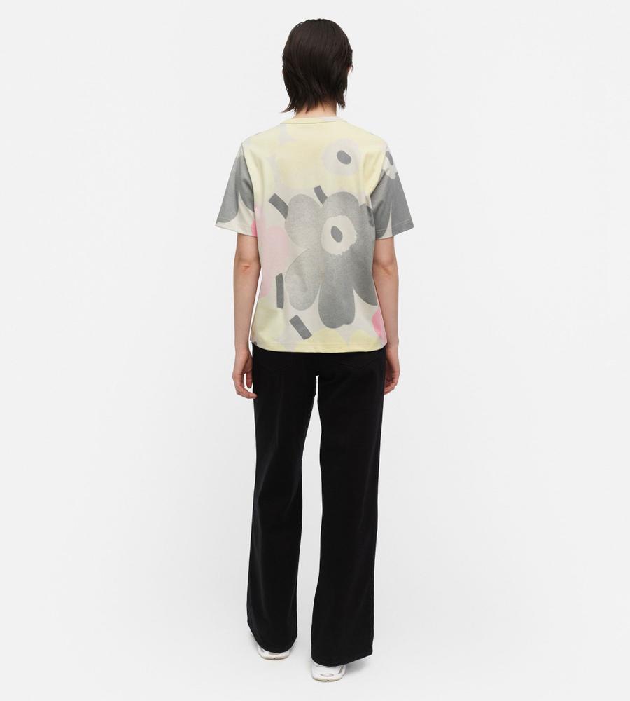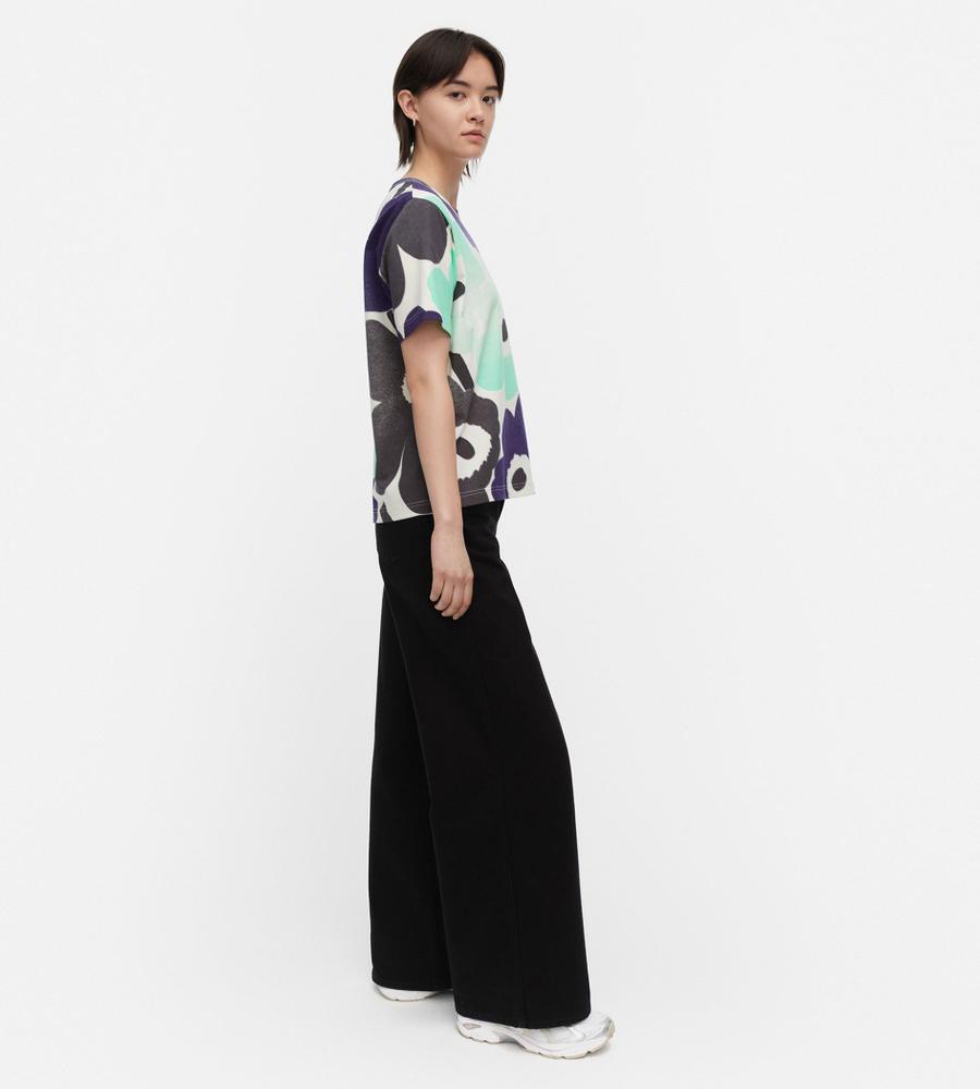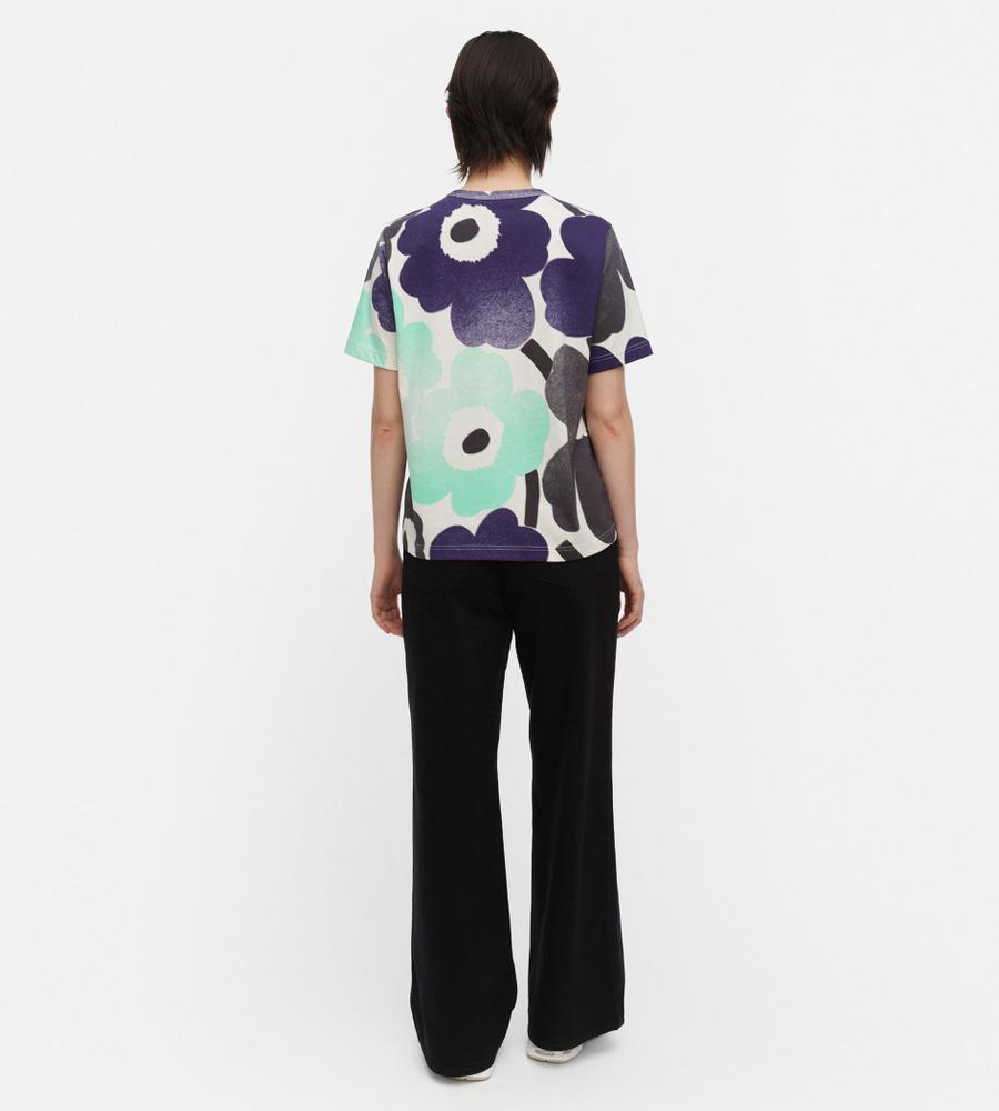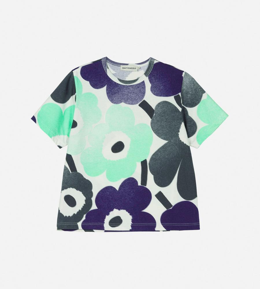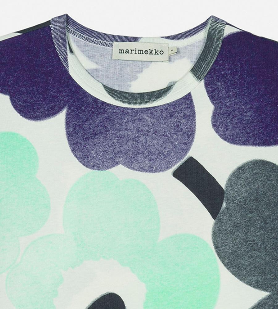 美しい色合いのUnikko柄が着こなしを引き立てるTシャツ。ほど良いフィット感のあるシルエットで、スマートなコーディネートに。素肌にやさしいコットン素材も、着心地良さのポイントです。