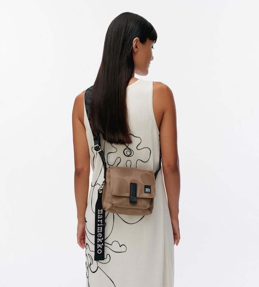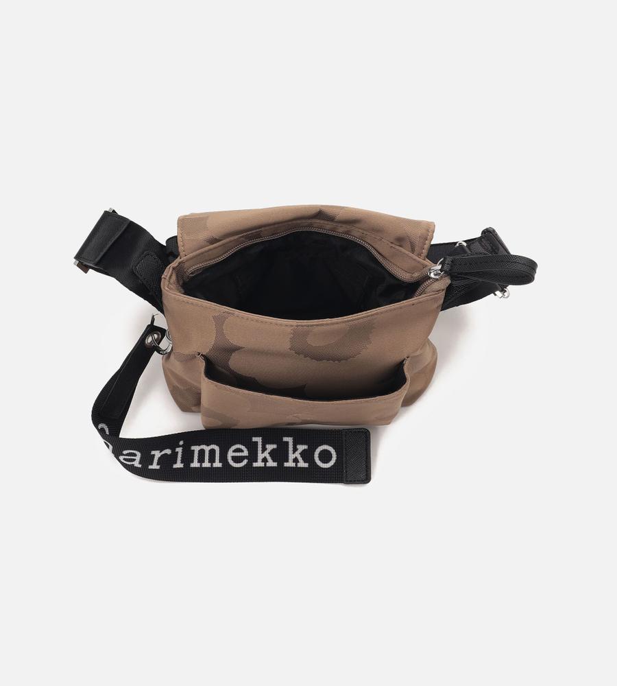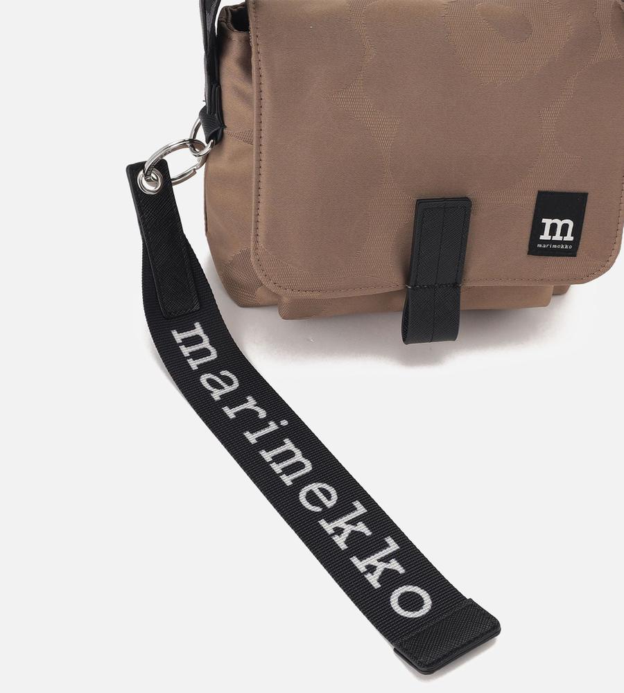 ジャカードで「Unikko」柄を表現した、Marimekkoらしいスタイリッシュなメッセンジャーショルダーバッグ。フラップ付き間口は安心感があり、海外旅行などにもおすすめです。ショルダーストラップもUnikko柄で、長さの調節が可能。チャームとなるロゴ入りテープが大きく、さりげない遊び心を感じさせます。