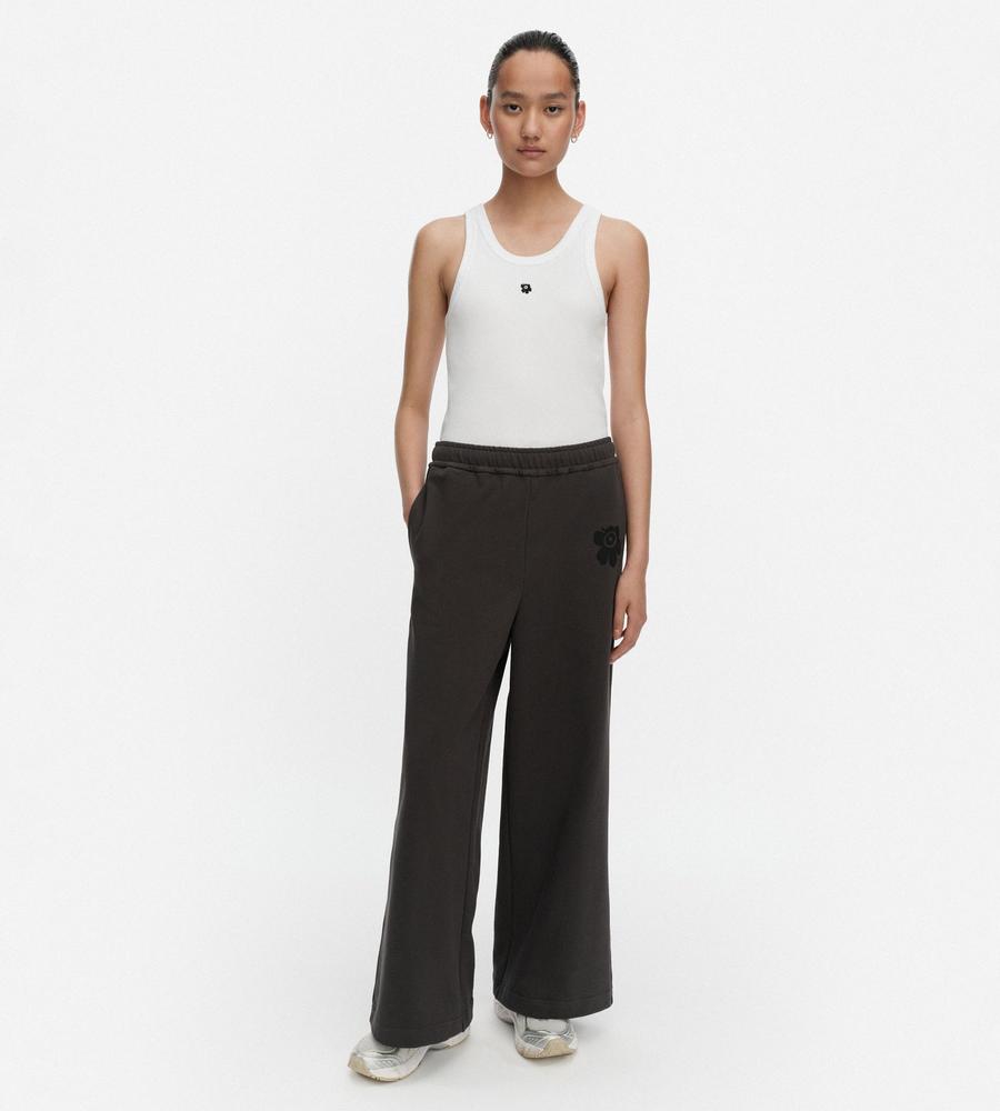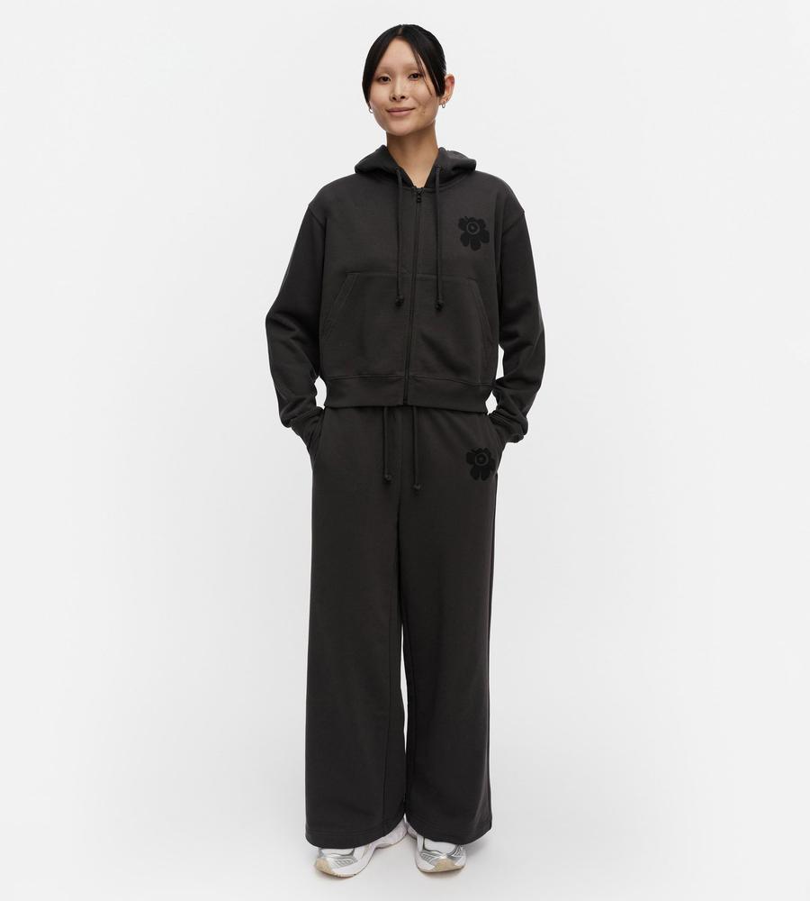 Marimekkoを代表するUnikko(ウニッコ)柄のパンツです。リラクシーな素材とシルエットで、ラフに過ごしたい日からアクティブに動きたい日まで幅広いシーンでお使いいただけます。さりげなくあしらわれたUnikkoのワンポイント柄に注目、同素材のフーディーとセットアップでそろえるのがおすすめです。