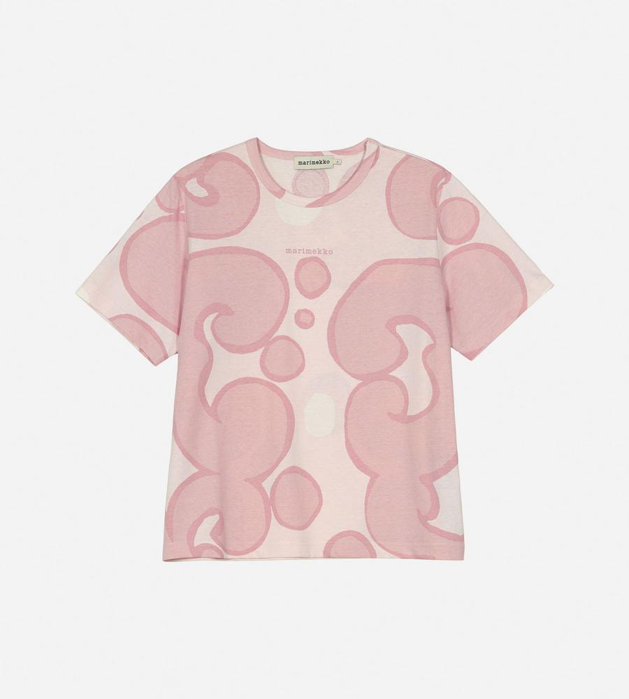 Marimekkoからオアシスを意味するKeidas(ケイダス)柄のTシャツが登場です。遠目にもインパクト抜群なプリント柄で、1枚着はもちろんインナーとしても存在感たっぷりにお使いいただけます。毎日のカジュアルシーンから、アクティブに動きたい日まで幅広いシーンで活躍するアイテムです。