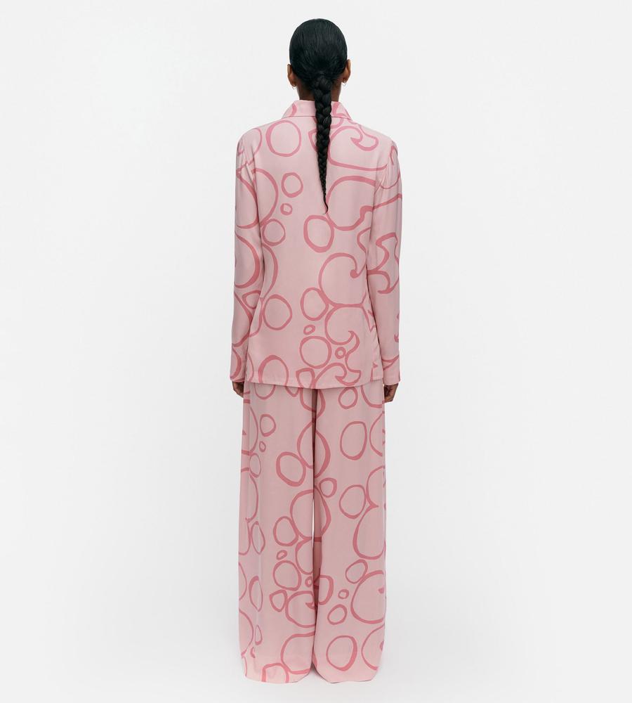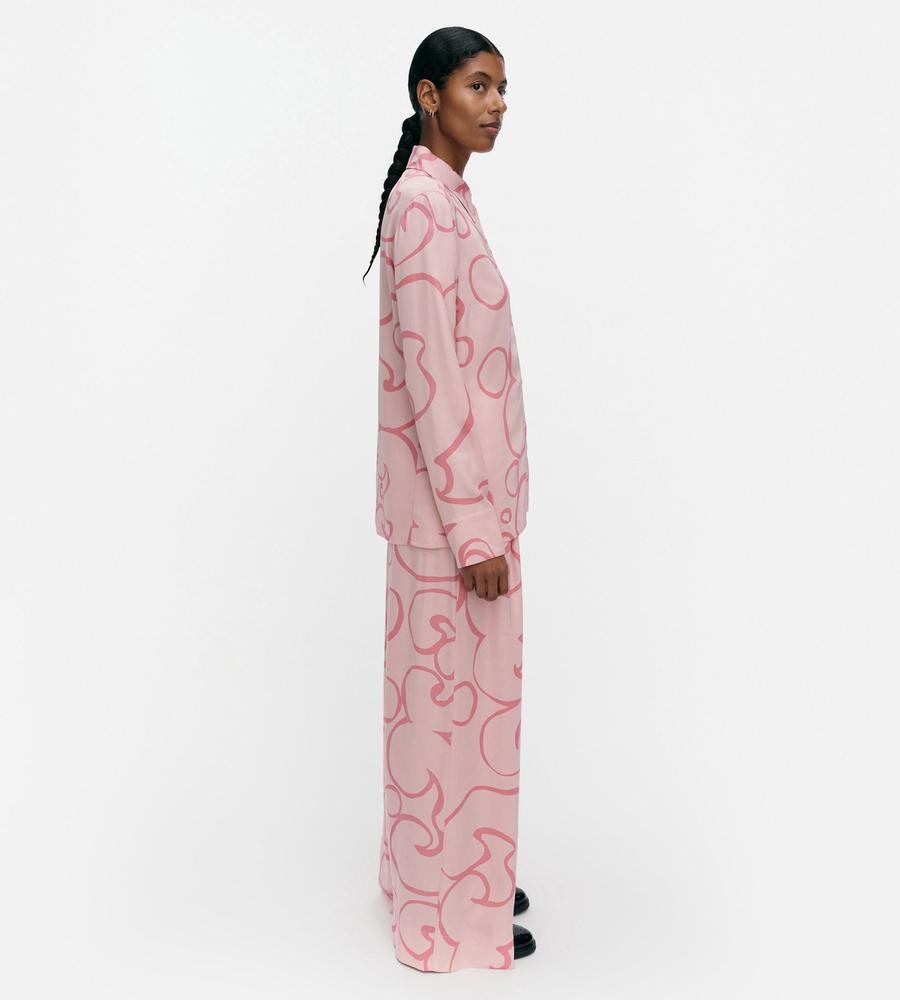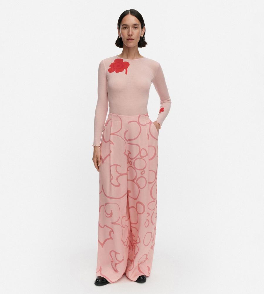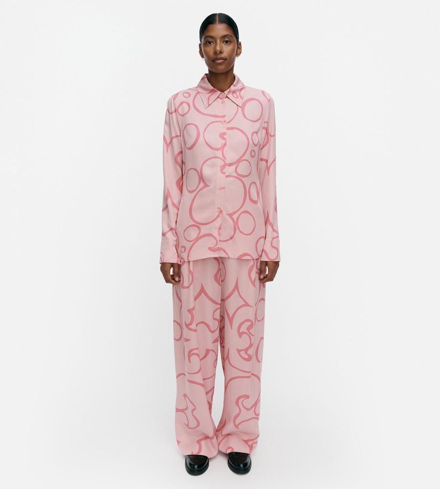 Marimekkoからオアシスを意味するKeidas(ケイダス)柄のパンツが登場です。存在感たっぷりなプリント柄でインパクト抜群、ゆったりはけるワイドシルエットで脚長効果が狙えます。同柄のシャツをあわせたセットアップコーデもおすすめで、カジュアルにもきれいめにも使える着まわしアイテムです。