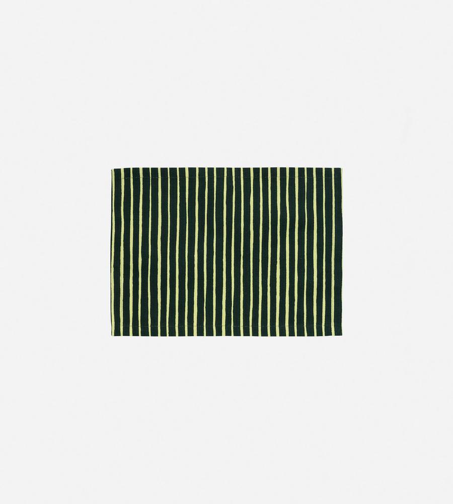 ほんのりスパイシーなストライプ柄プレイスマット。テーブルやチェストのアクセントとして気軽に取り入れられるのが魅力。インテリアを大人っぽく引き締めたいシーンにもおすすめの一枚です。
