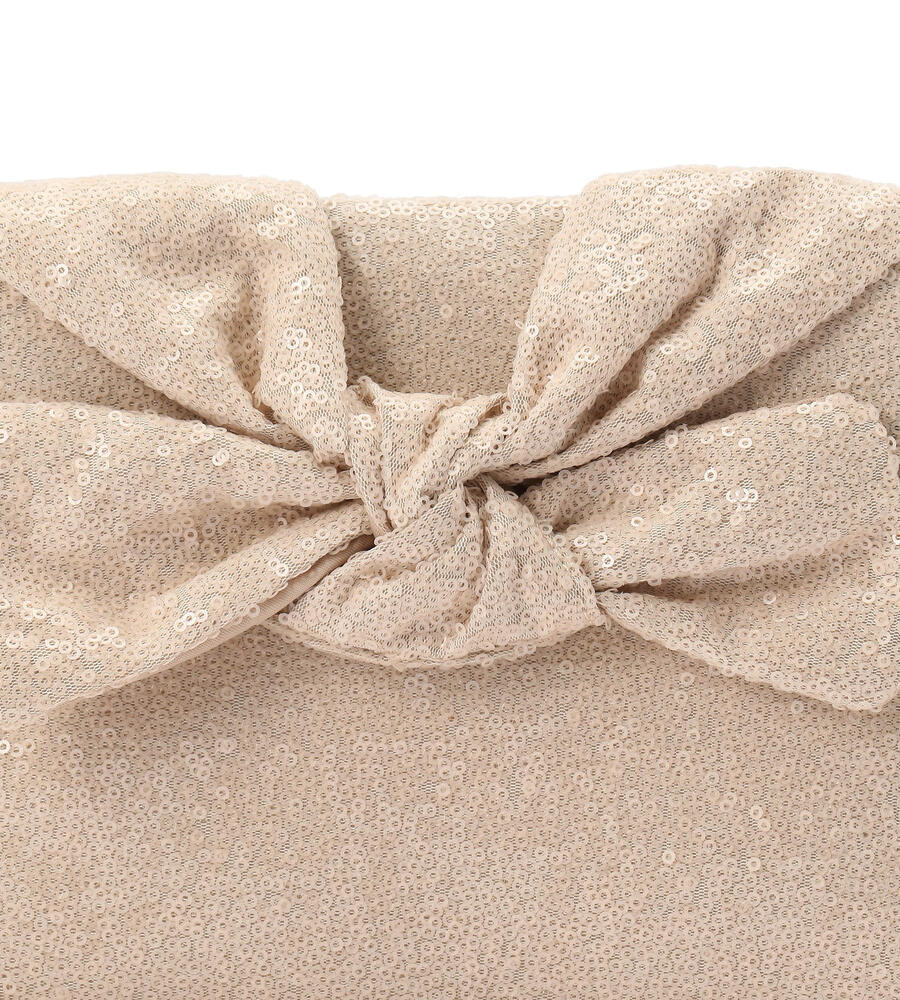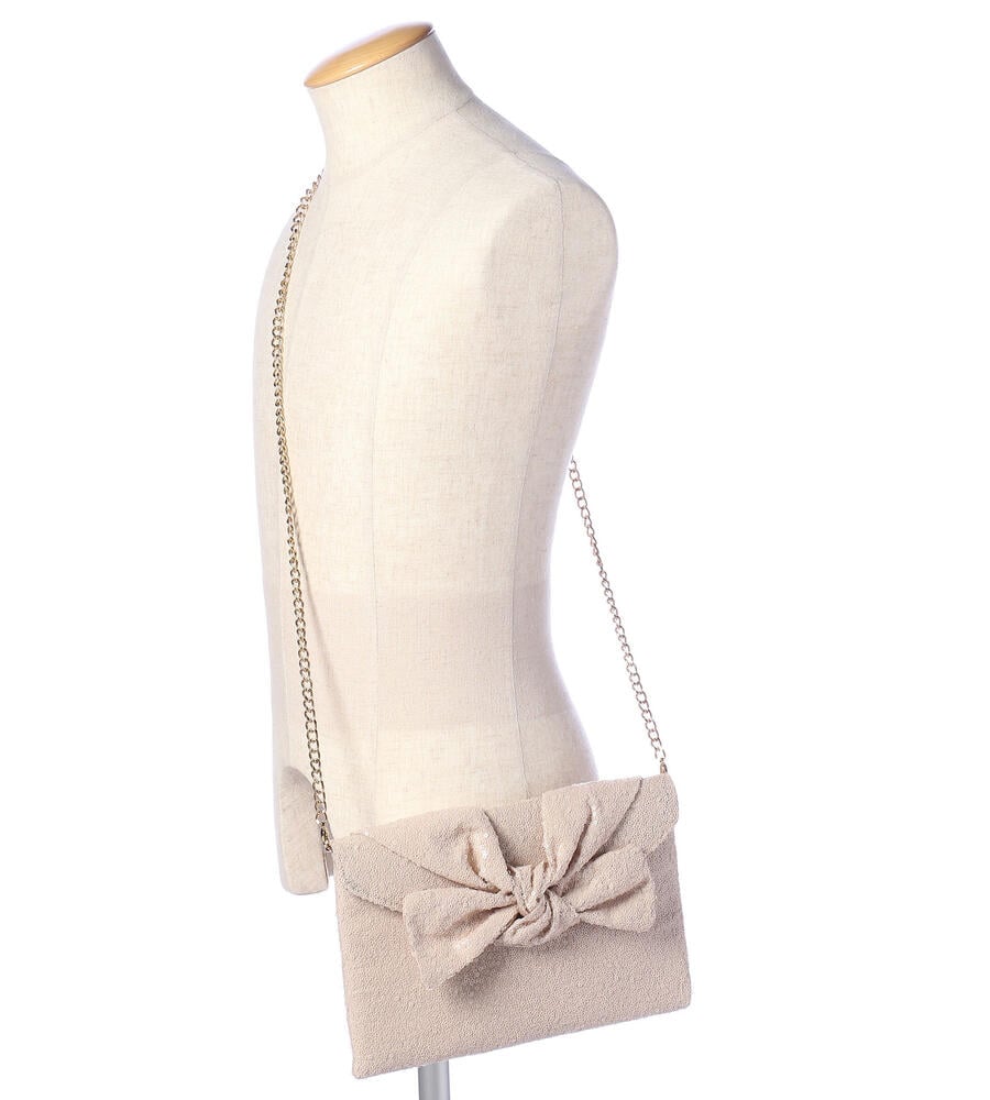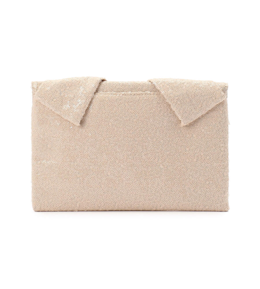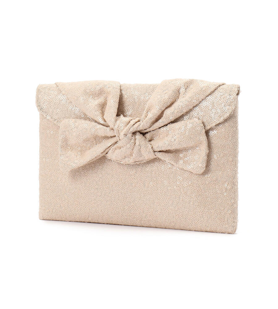 キュッと結んだリボンディテールがアクセントになった、愛らしさ満点のショルダーバッグ。上品なスパンコールを全面にあしらったルックスは、パーティーなどの華やかなシーンにもぴったり。フラップはマグネット開閉、内側には小物収納に便利なファスナーポケットを備えています。