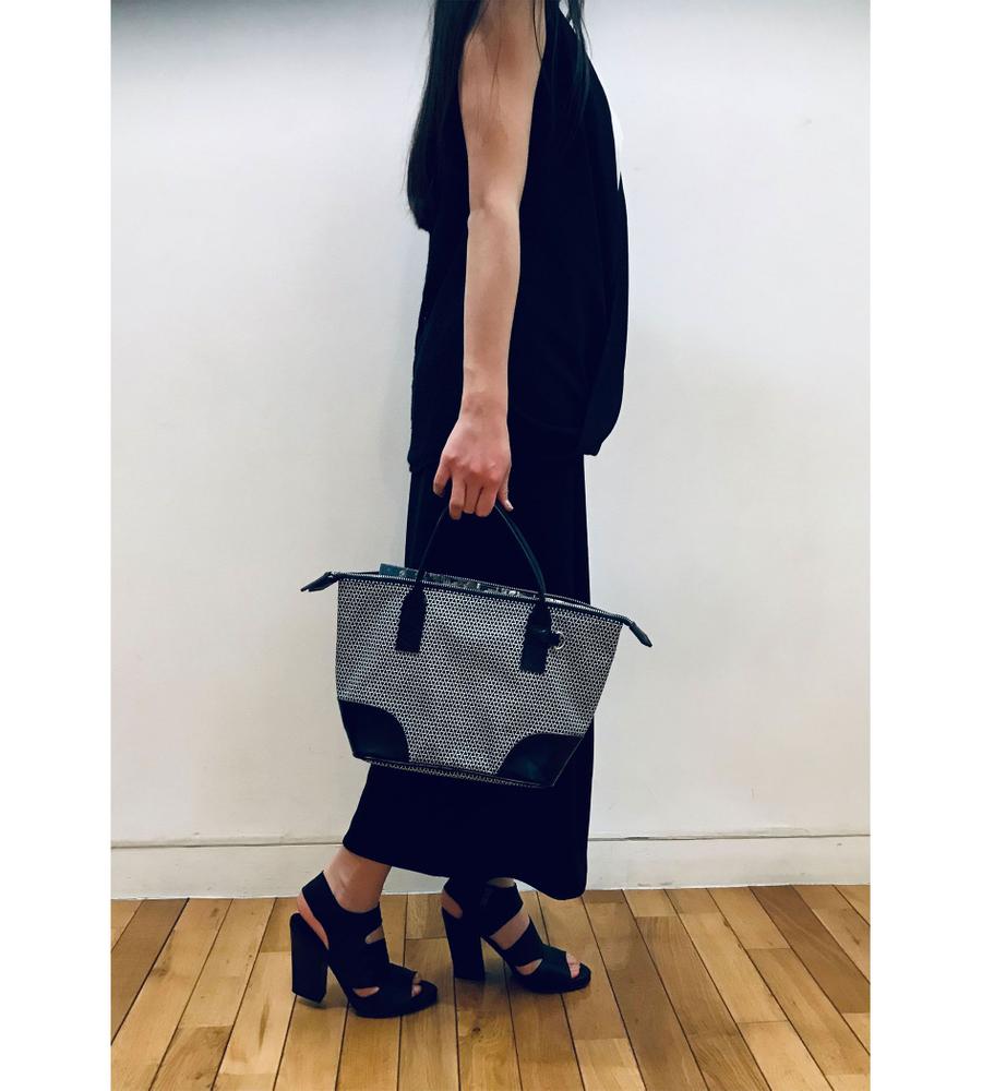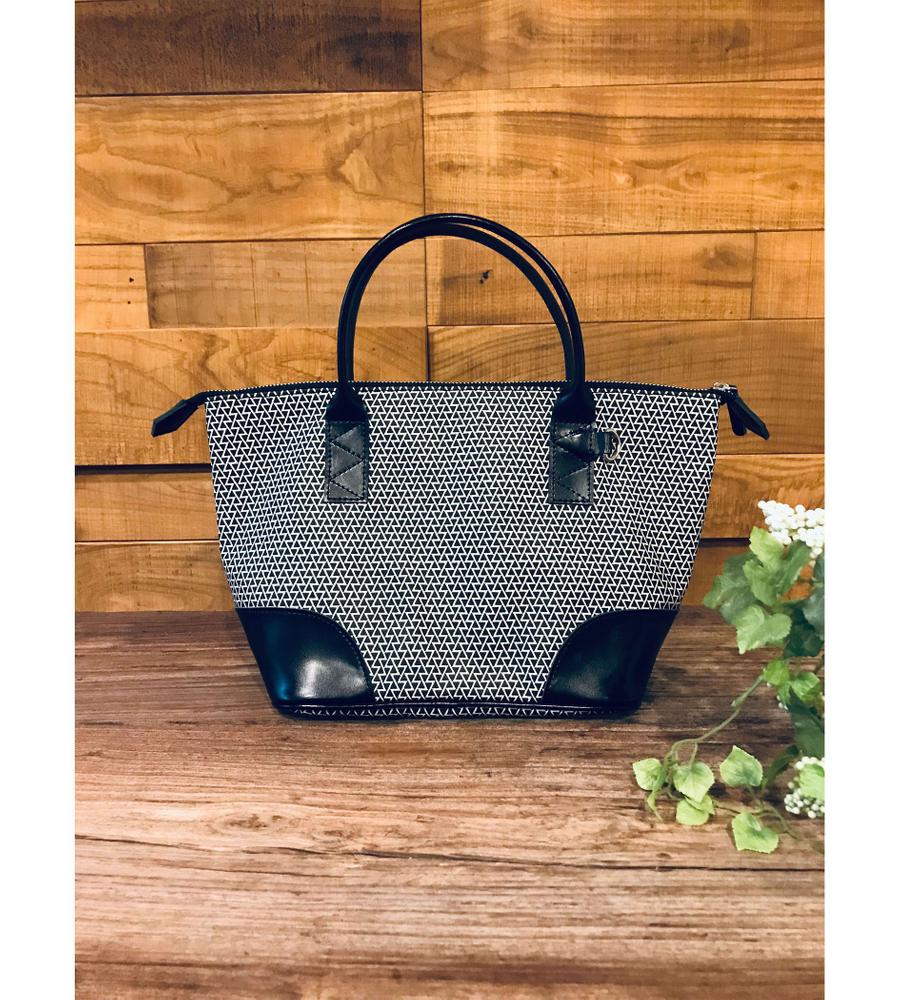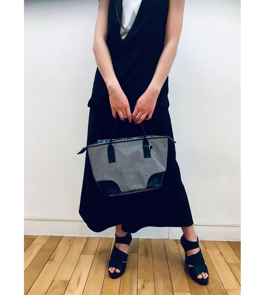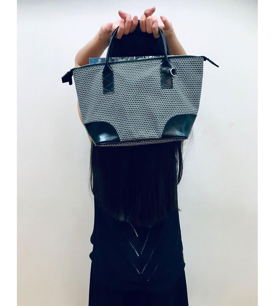表生地にはPVCコーティングを施しているので、水に強く手入れしやすい素材。開口部はファスナーで収納も安心。B5サイズが収納できるコンパクトなサイズで気軽に持ち運び頂けます。持ち手・パイピング・ハカマ部分には牛革(シブ革)が施され、カジュアルの中にも大人のラグジュアリー感が漂うデザインになっています。