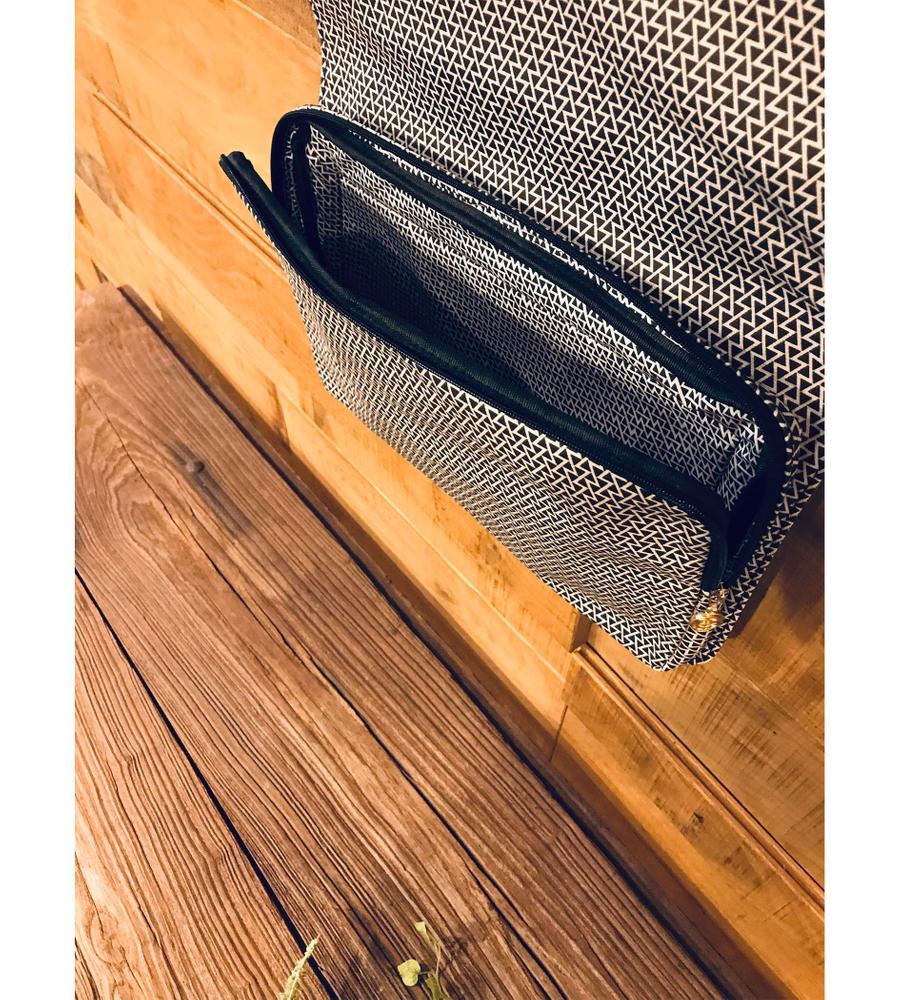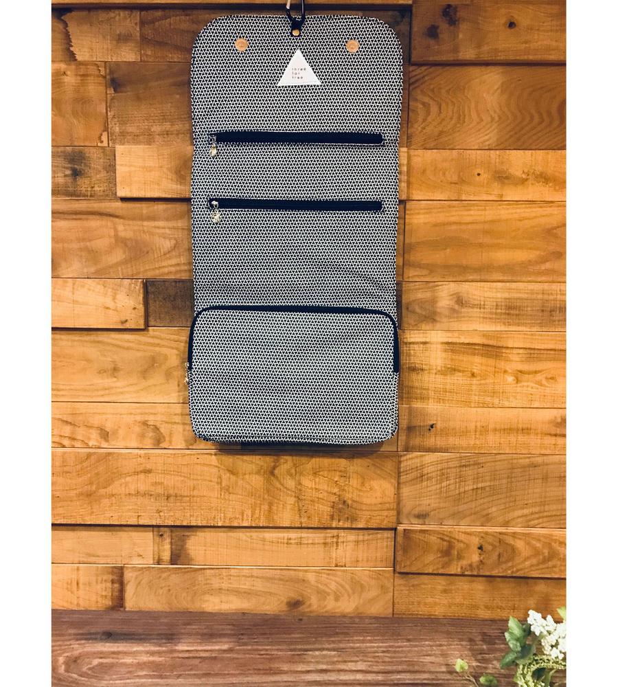 表生地にはPVCコーティングを施しているので、水に強く手入れしやすい素材。クラッチ型のデザインなので気軽に持ち運べ、またバッグインしてもかさ張らない薄型タイプ。中面は、ファスナーポケット2つとポーチ型ポケットが施され、旅先や出張先などのシチュエーションでも、コスメやバス用品などを細かく収納できるデザインになっています。また、付属のカラビナ部分をハンガーなどに引っかけて吊るす事が出来るので、出先でも簡単に取り出しやすくトラベル・フィットネス・ビジネストリップなど、様々な場所で対応できる人気のクラッチポーチです。