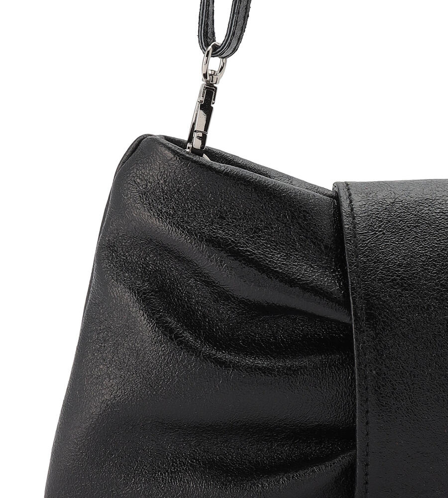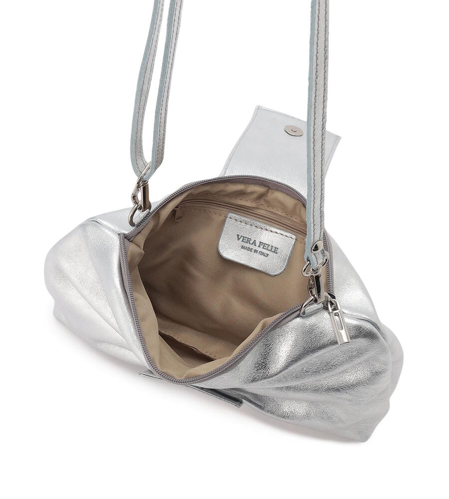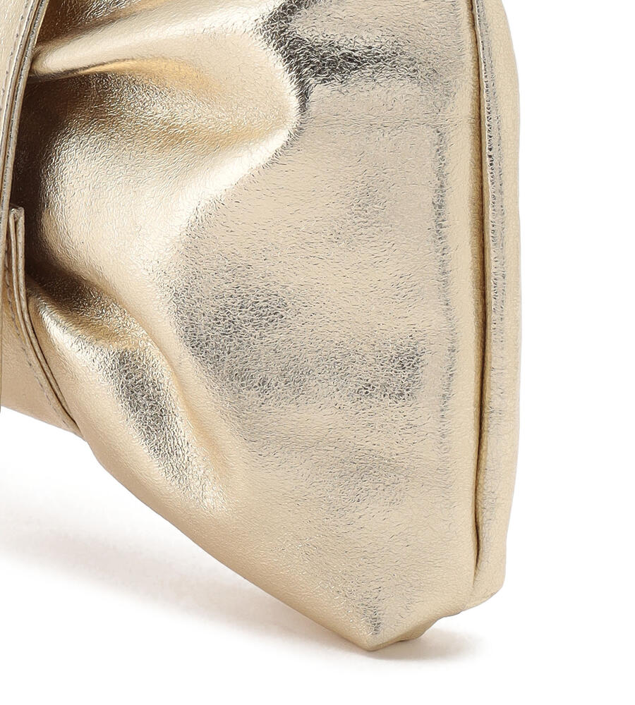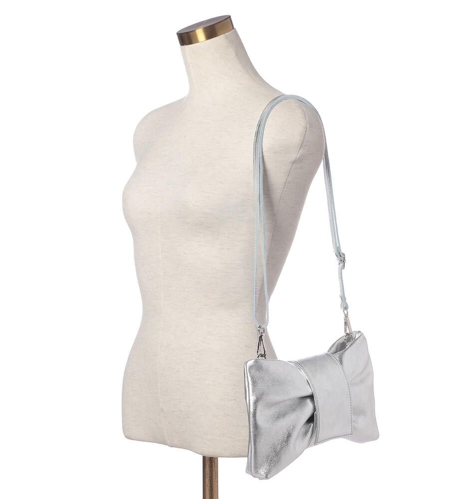 リボンをモチーフにした愛らしいルックスが魅力のレザーバッグ。スリムなショルダーベルトは長さ調整が可能になっており、取り外せばクラッチバッグとしてもお使いいただけます。内部にはファスナーポケット付き。着こなしのアクセントになるメタリックカラーと定番ブラックで展開したアイテム。