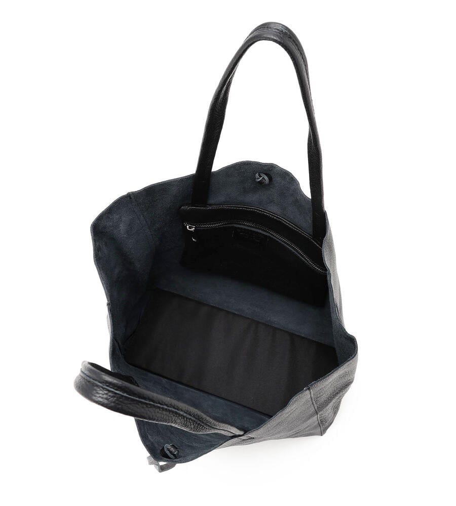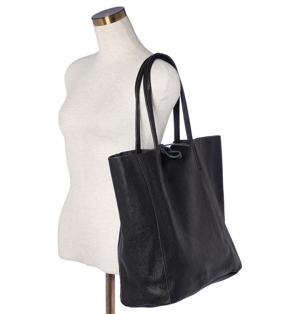 柔らかで上質なレザーで仕立てたビッグトートバッグ。小物を入れられるジップポーチ付きで整理整頓に便利な仕様。サイドと底にしっかりとしたマチがあり、大容量の収納力で使い勝手抜群で様々なシーンにマッチ。開閉リボン結びのシンプルなデザインで、様々なコーディネートにマッチする便利なアイテムです。