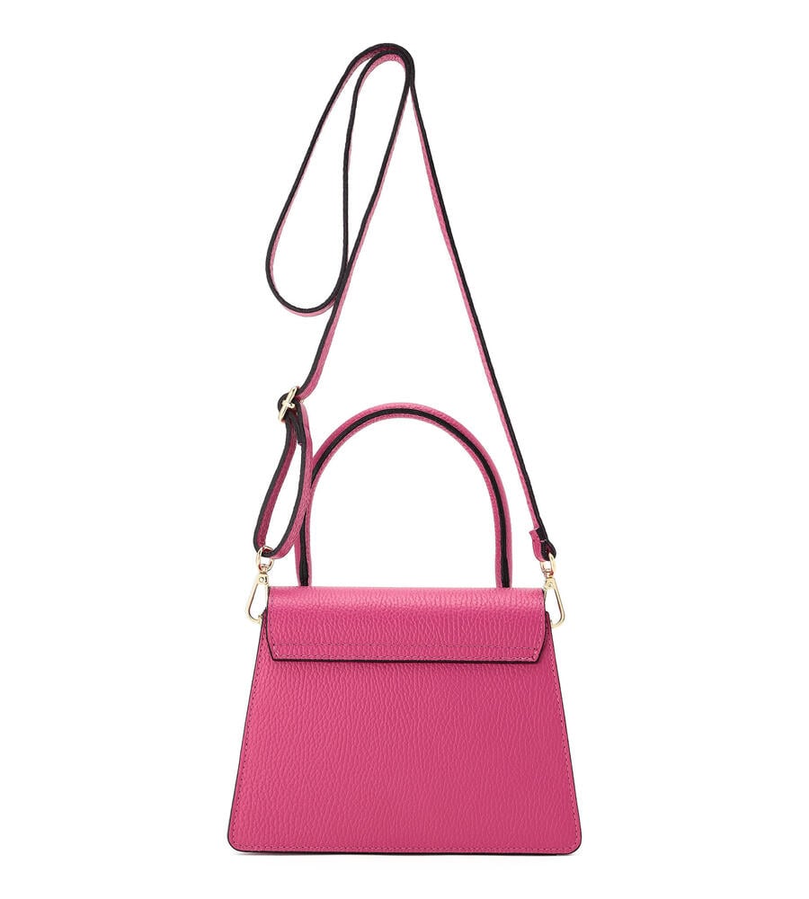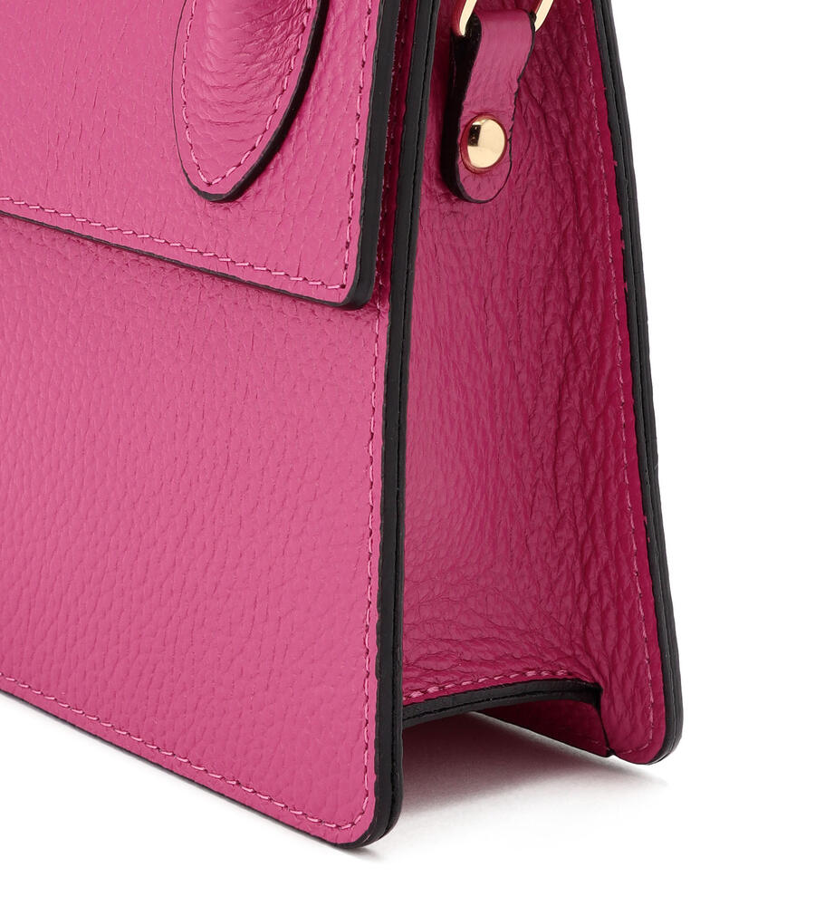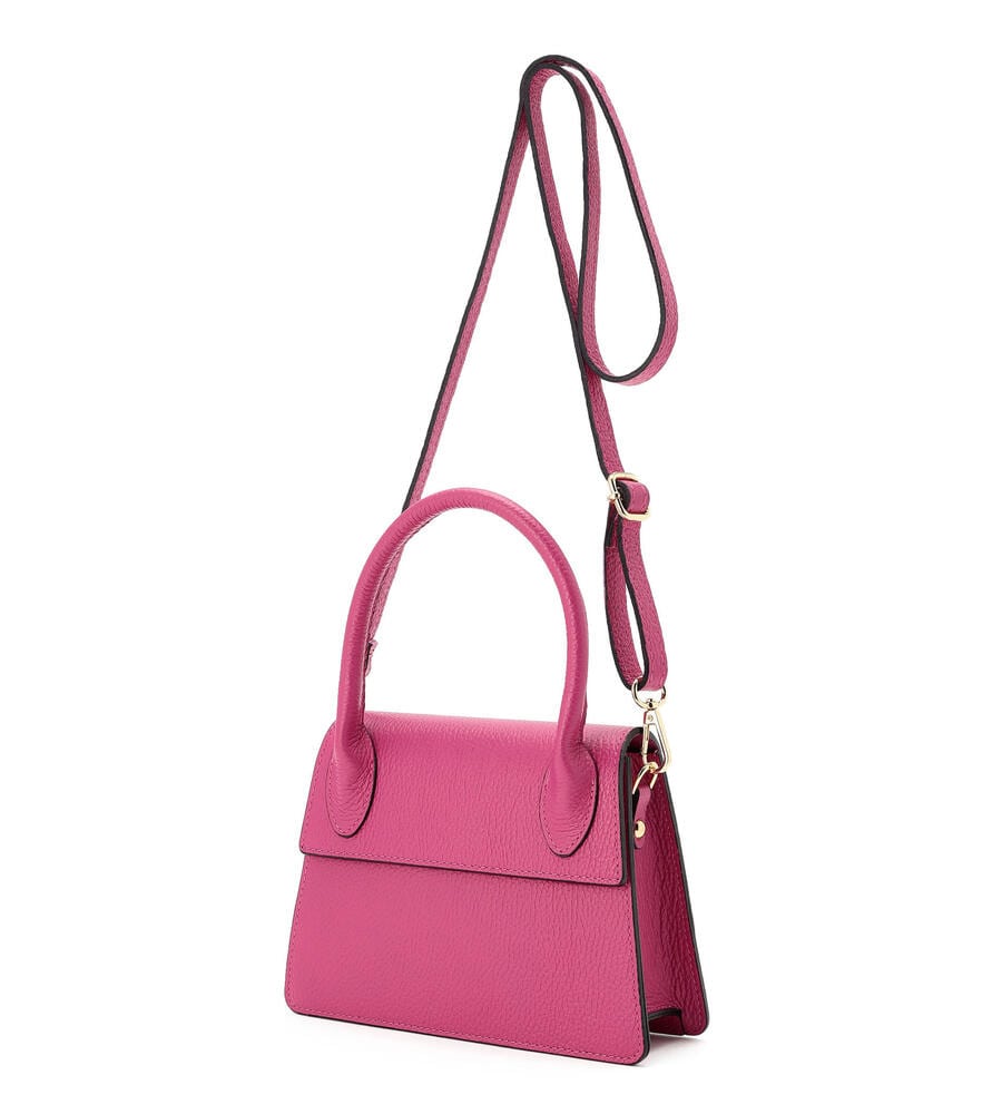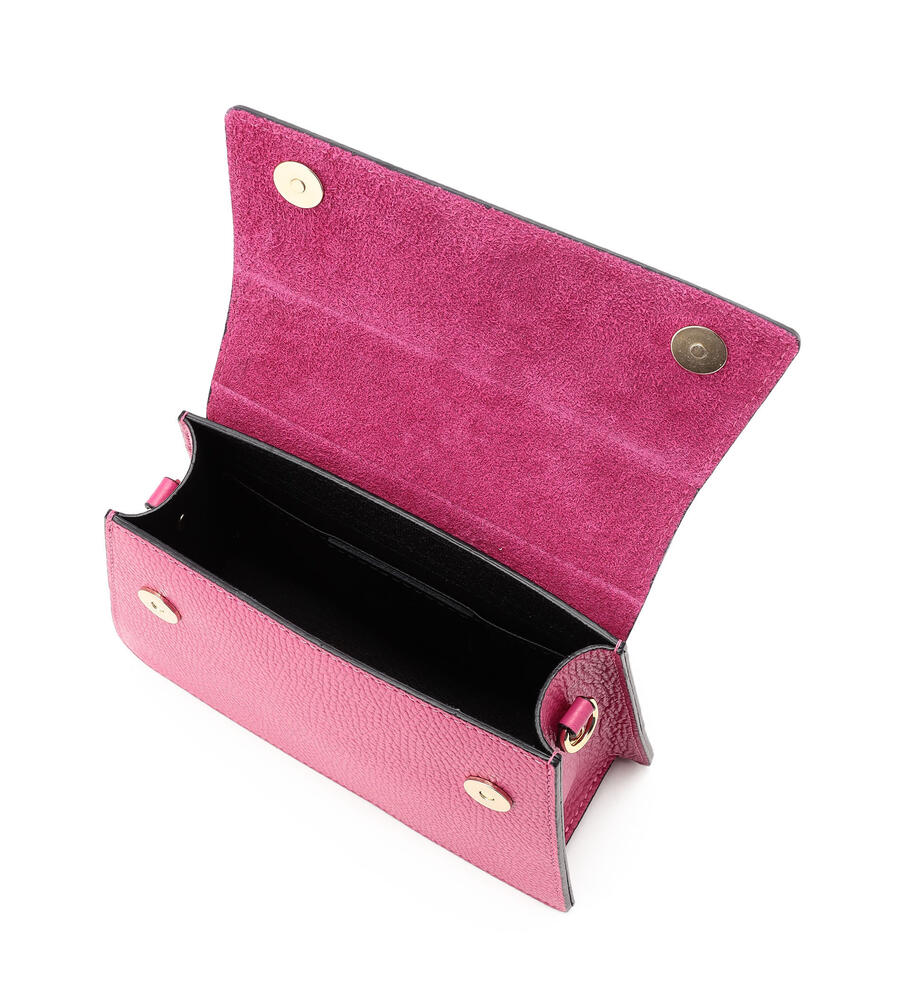 上質なレザーが魅力のショルダーバッグ。台形型のスタイリッシュなフォルムが魅力。しっかりとしたマチがあり、お出かけにぴったりな収納力。ストラップ部分は取り外し可能で、ハンドバッグとショルダーバッグ2通りの異なる印象を楽しめます。おしゃれなお出かけコーディネートが実現するアイテムです。